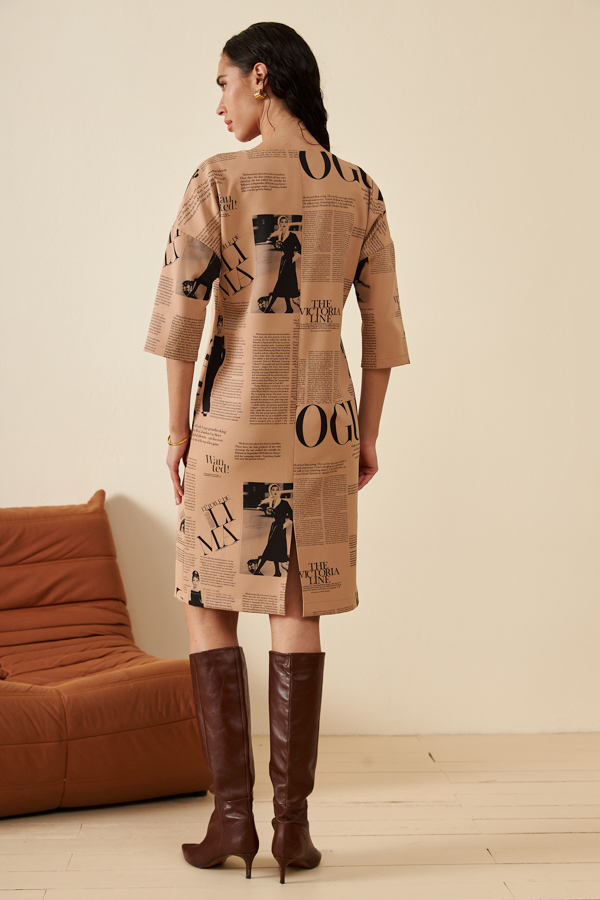 Платье полуприлегающего силуэта из плательной ткани. Круглый вырез горловины. Спинка со средним швом, снизу разрез. Рукав втачной в спущенную пройму. В таблице размеров представлены параметры человека, а не изделия.
