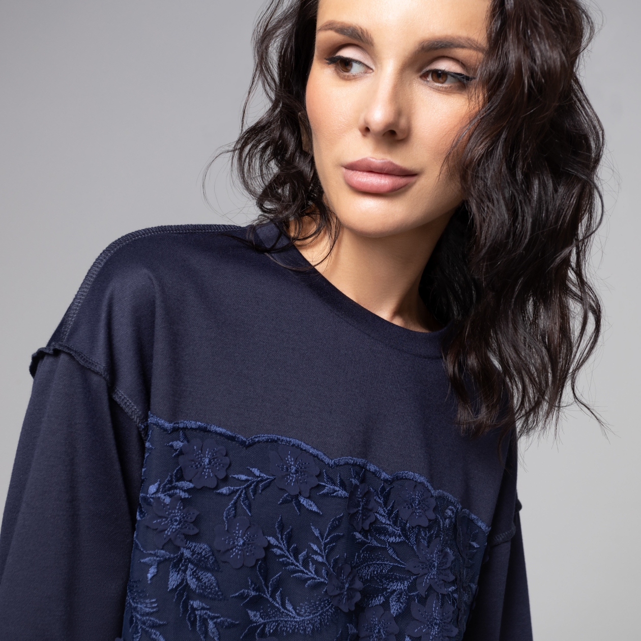 Лонгслив ЧАРУТТИ в дорогом глубоком синем цвете представляет собой баланс стиля casual и haute couture. Свободная посадка подходит любому типу фигуры. Изящное кружевное дополнение по передней стороне изделия придает изделию элегантный вид, а трендовые прорези на рукавах подчеркивают ваше внимание к деталям. Безупречный пошив демонстрируют идеальные строчки и тщательная проработка швов, что гарантирует долговечность носки.