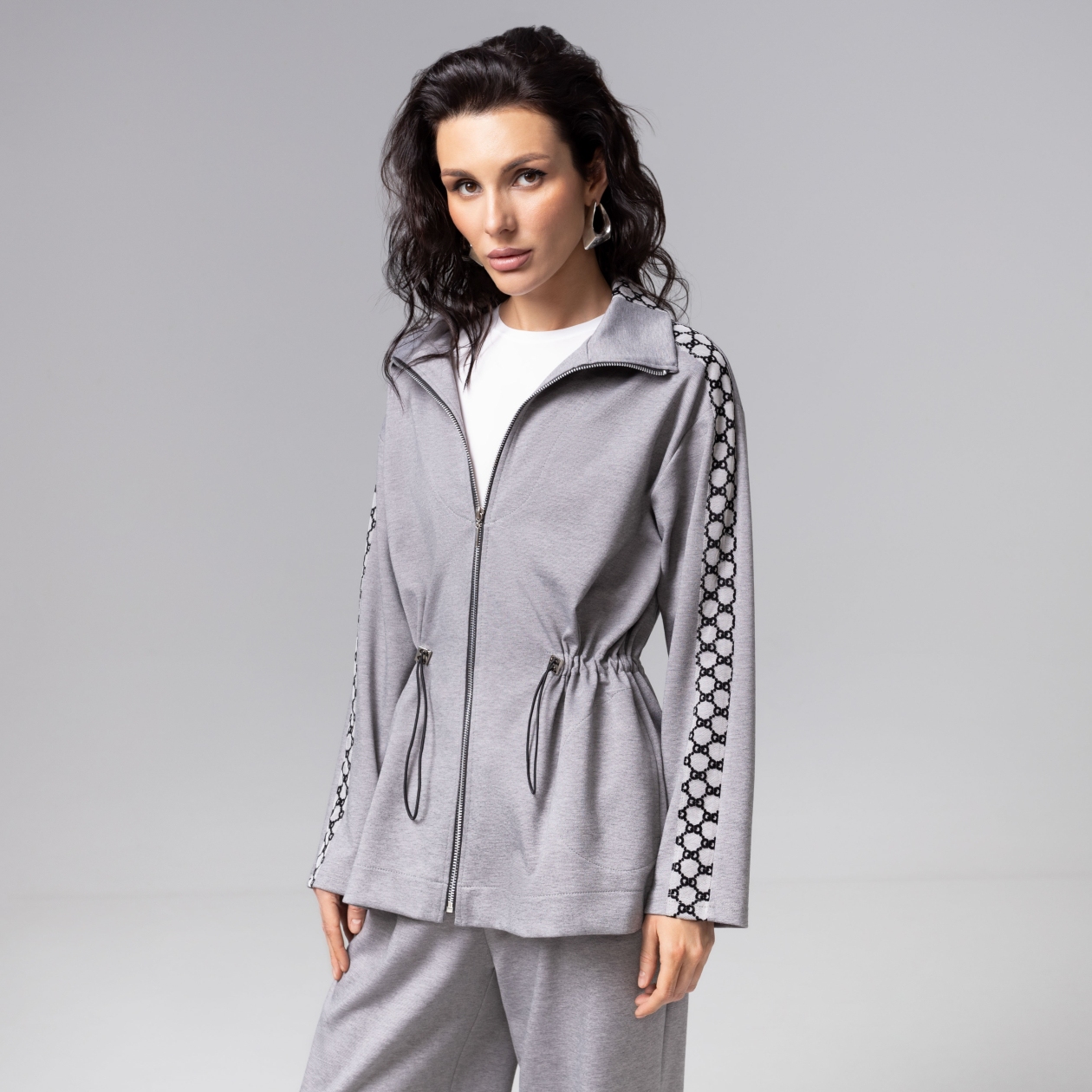 Парка ЧАРУТТИ стального серого оттенка воплощает современную элегантность. Классический крой оформлен деталями в виде вшитых лампасов, добавляющих образу строгую динамику. Функциональность модели подчеркивается наличием кулиски на талии с возможностью регулировать объем и создавать безупречную посадку, подчеркивающую силуэт. Продуманная конструкция и плотный эластичный трикотаж обеспечат комфорт и долговечность носки.