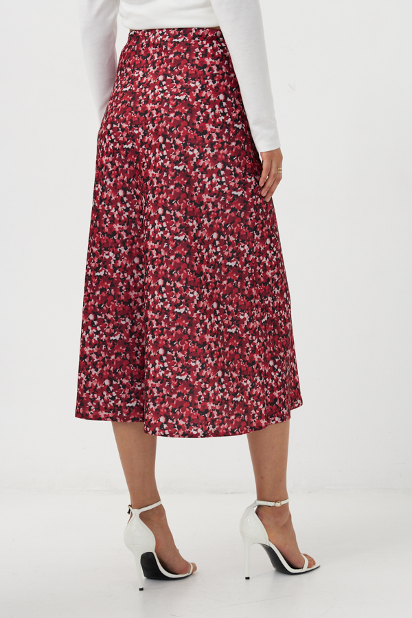 Юбка прямого силуэта из атласной ткани. Крой юбки по косой, на линии талии скрытая резинка.