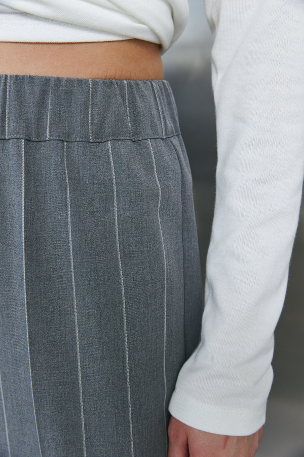 Брюки прямого силуэта из костюмной ткани. Пояс притачной с эластичной резиной.