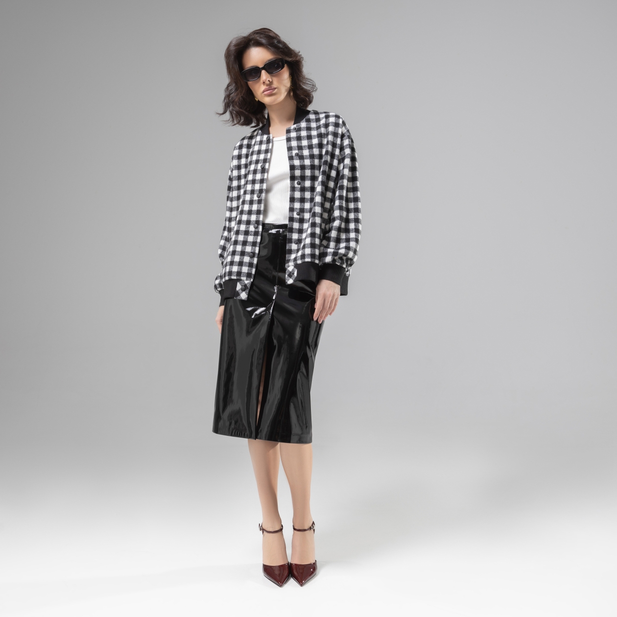 Среди элитарных видов спорта есть шахматы. Редкое, высокоинтеллектуальное действо. Образ рассудительной и награжденной талантом девушки можно создать с помощью стильного бомбера CHARUTTI в черно-белую клетку. Бомбер объемного силуэта в комбинации нескольких видов ткани. Безупречный крой дарит изделию идеальную посадку. Изделие с карманами. В качестве подклада – материал с принтом.
