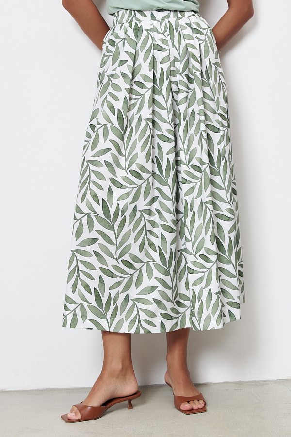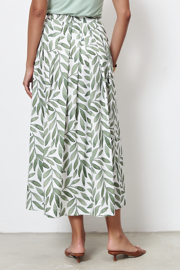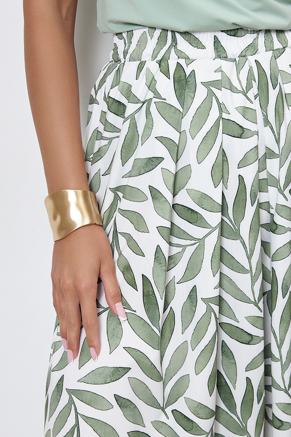 Юбка из вискозной ткани свободного силуэта со складками по линии талии. Пояс с эластичной резиной.