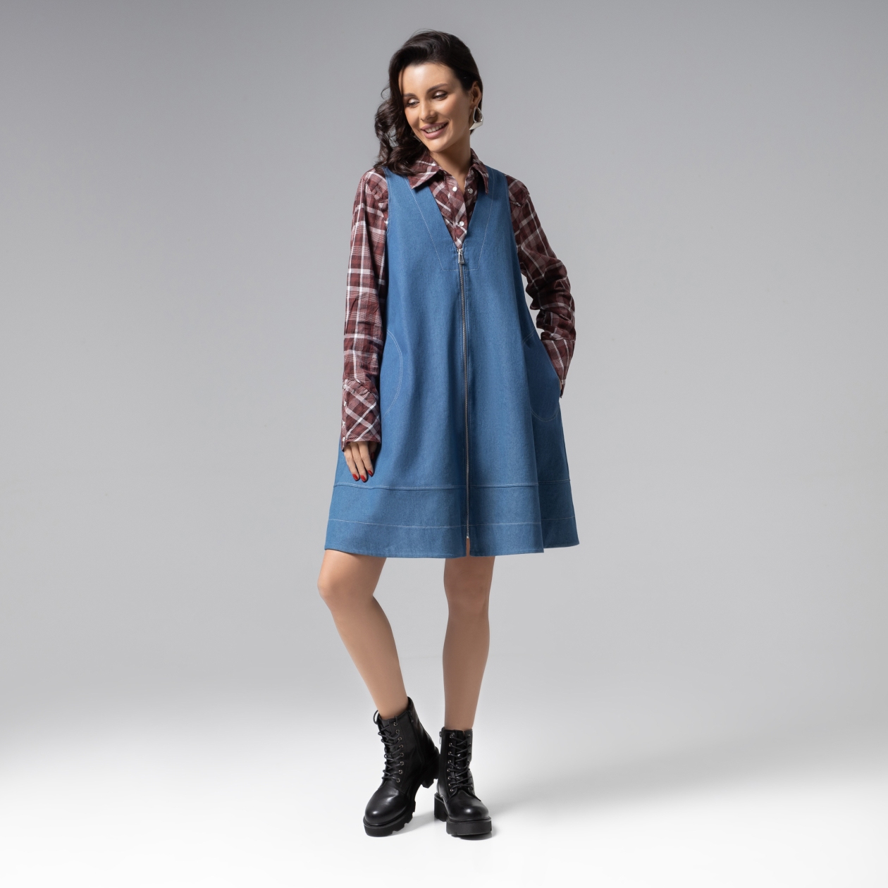 • АртикулСарафан объемного кроя с карманами, Джинсовое настроение