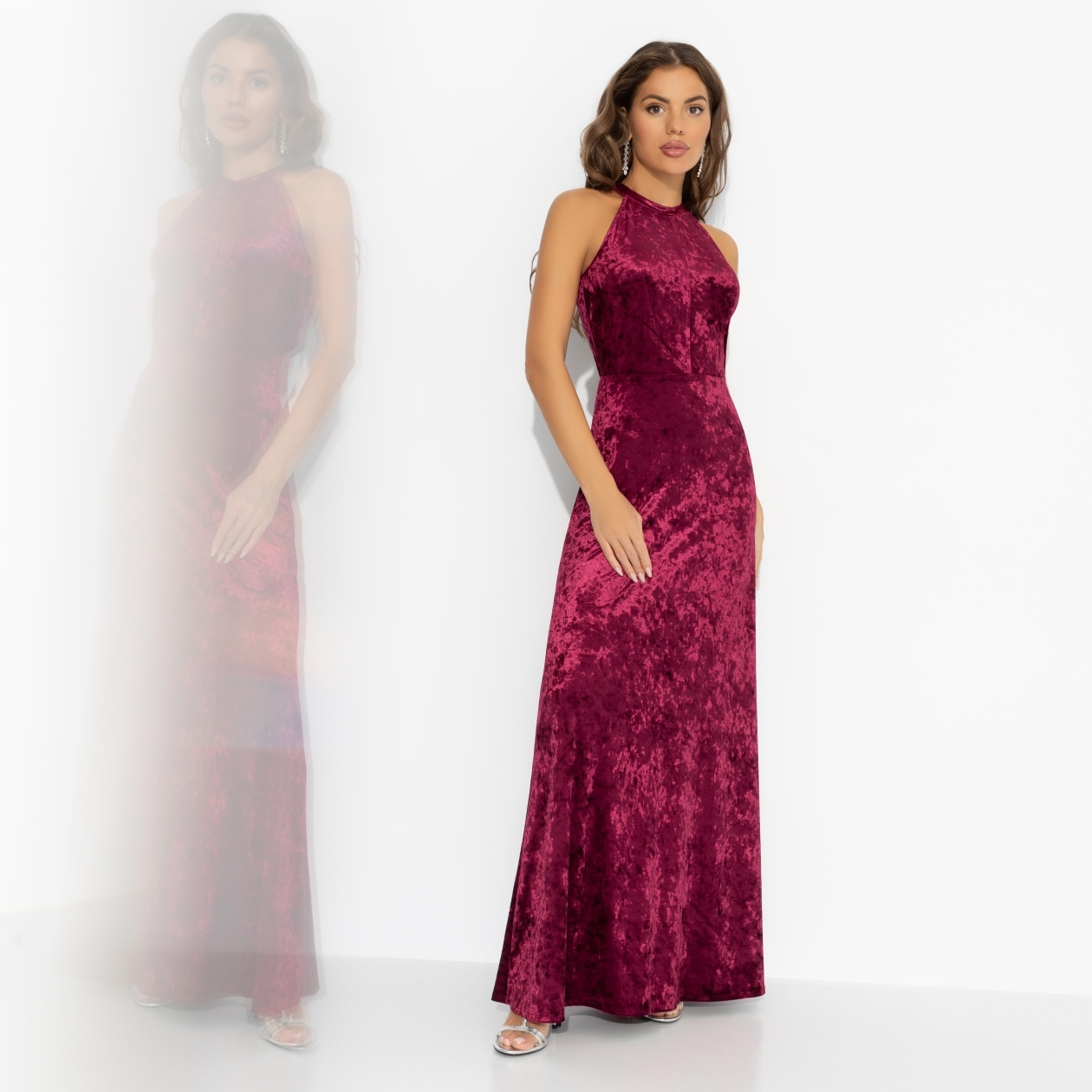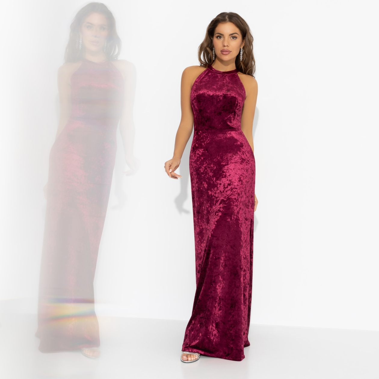 Хочешь повторить образ Зендеи с красной дорожки? Отличный выбор, ведь каждый ее выход воплощает уверенность, смелую элегантность и магию момента. Такое платье поможет тебе сформировать и поддерживать ауру селебрити, ведь бархатный блеск всегда в центре внимания. Бархатное платье струится по фигуре и эффектно играет на свету. Длина в пол добавляет драмы. Открытая спина равно сексуальность. Ты ‒ королева новогоднего вечера.
