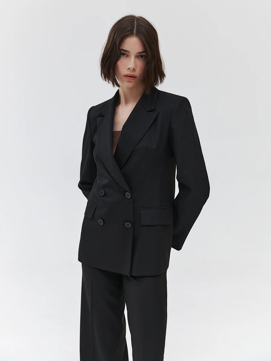 Ст.цена 4590р Двубортный удлиненный жакет Черный 40.707.0830.001.1