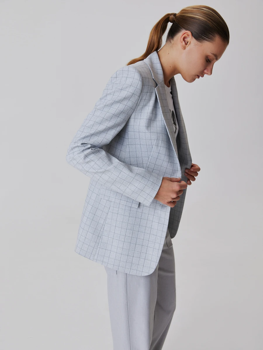 Ст.цена 4990р Однобортный жакет в клетку Светло-серый 40.919.0141.108.1