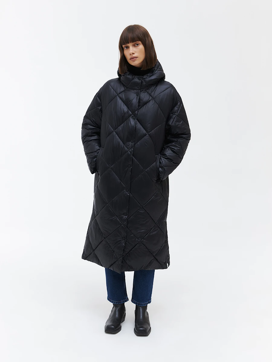 Ст.цена 4990р Пальто-миди со стежкой в ромбик Черный 90.375.3442.001.3