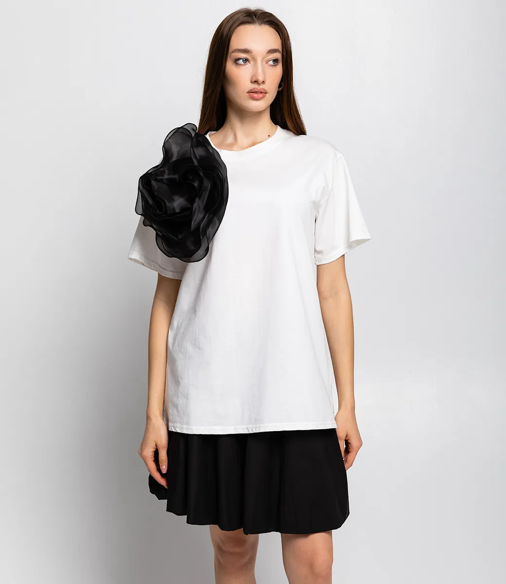 Футболка с ярким акцентом в виде объемной розы – это уникальное решение для тех, кто ценит оригинальность. Этот элемент декора придает модели особую изысканность и привлекает внимание окружающих. Роза выглядит очаровательно и добавляет шарма образу. Кроме того, она подчеркивает женственность и элегантность. Футболка с таким дизайном станет ярким акцентом в вашем гардеробе, придавая стиля и индивидуальности вашему образу. Яркий цвет розы прекрасно сочетается с основным оттенком футболки, создавая гармоничный и привлекательный образ. Комбинируйте эту модель с различными элементами гардероба и создавайте стильные и запоминающиеся образы. Не упустите возможность приобрести эту уникальную футболку по доступной цене и добавьте своему стилю яркий и неповторимый штрих! Рост 168, 85-63-92