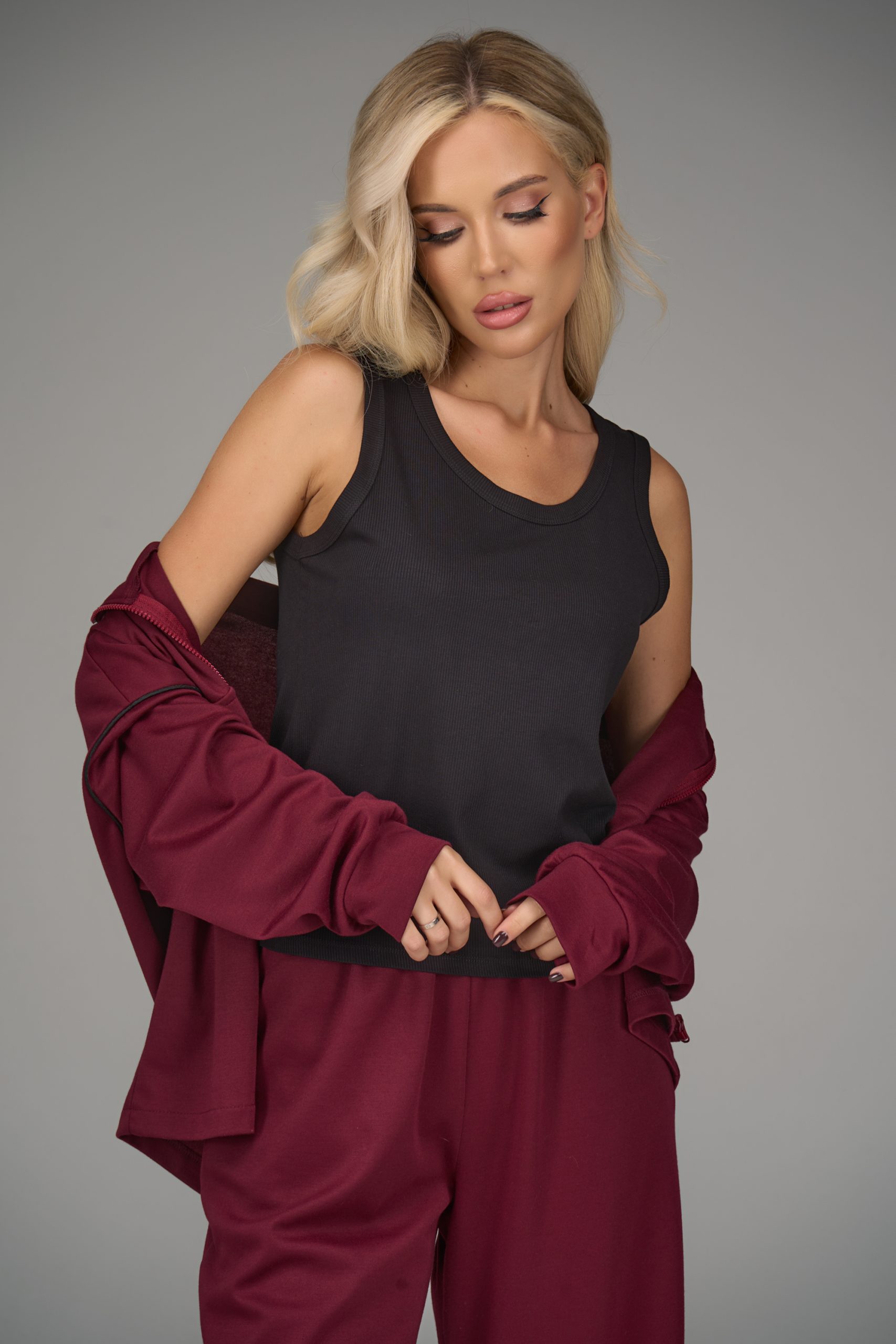 Современный и универсальный трикотажный топ станет идеальным дополнением вашего гардероба. Мягкая, приятная к телу ткань обеспечивает комфорт на весь день, а аккуратный крой подчёркивает силуэт, не сковывая движений. Минималистичный дизайн делает его легко комбинируемым — носите с офисными брюками, юбкой или любимыми джинсами. Топ доступен в нескольких спокойных оттенках, которые подчеркнут вашу естественную элегантность.