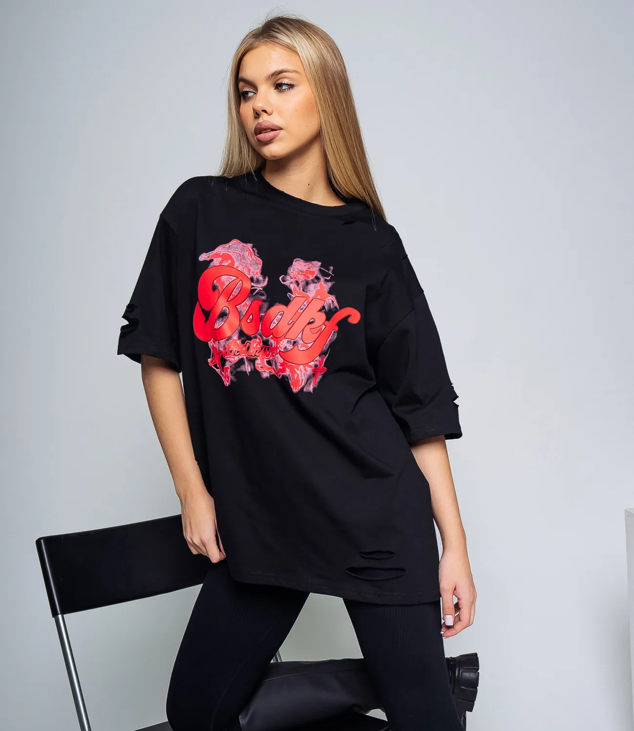 Удлиненная футболка свободного кроя, которая подарит образу комфорт и свободу движения.