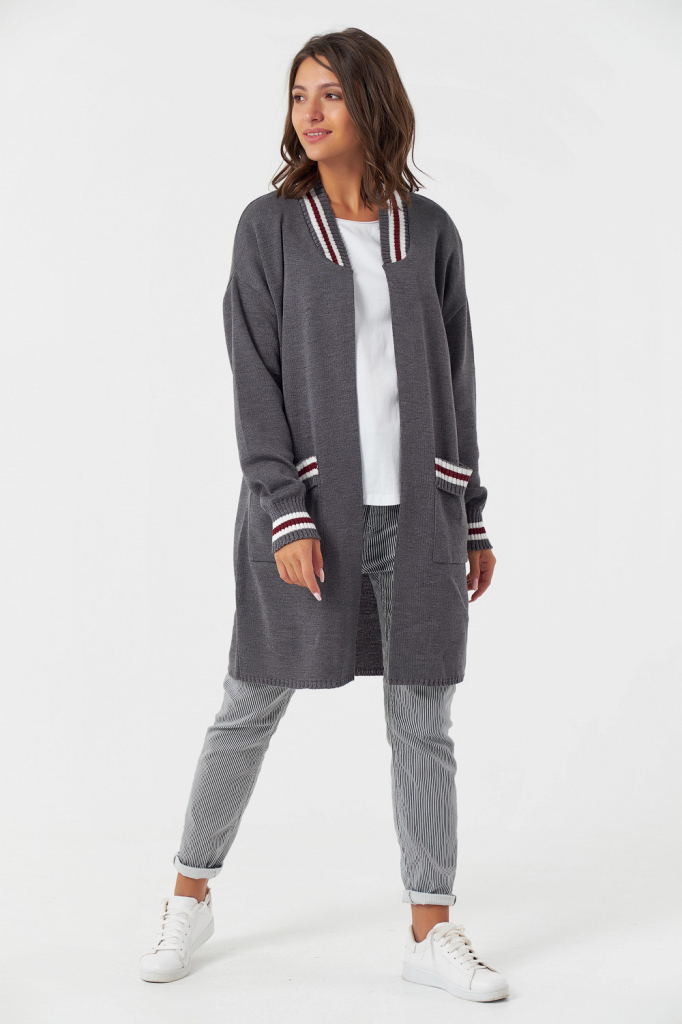 ст. цена2174руб.! Кардиган вязаный свободный с карманами серый