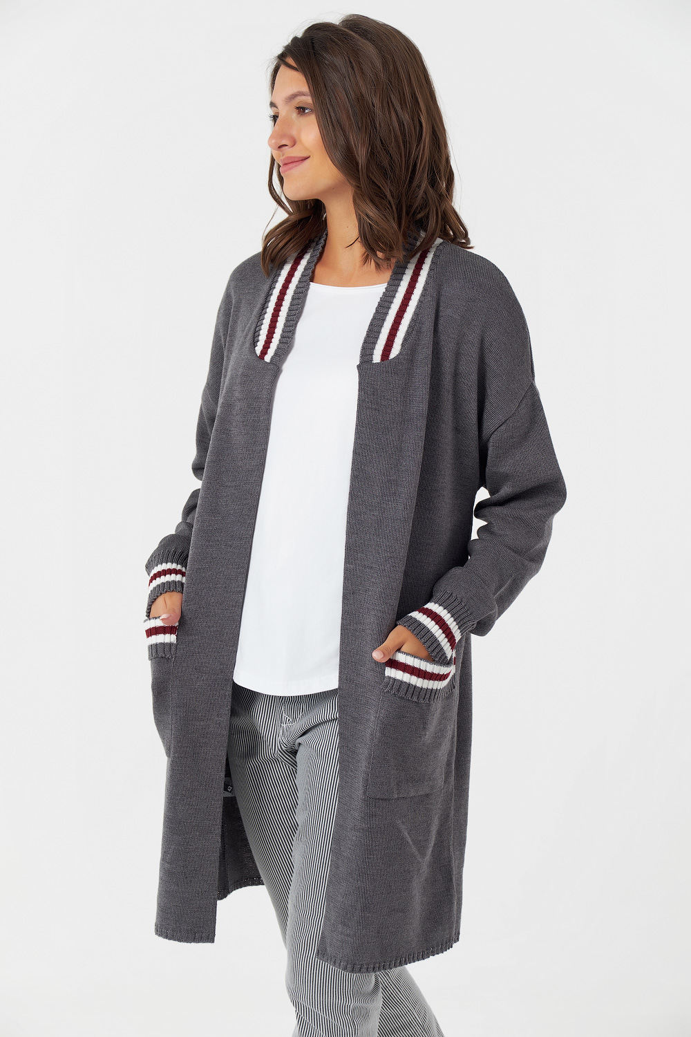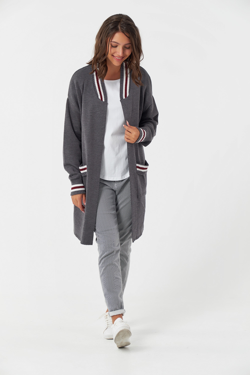 Особенности:  Мягкий тонкий кардиган с контрастной отделкой по рукавам, горловине и на карманах.