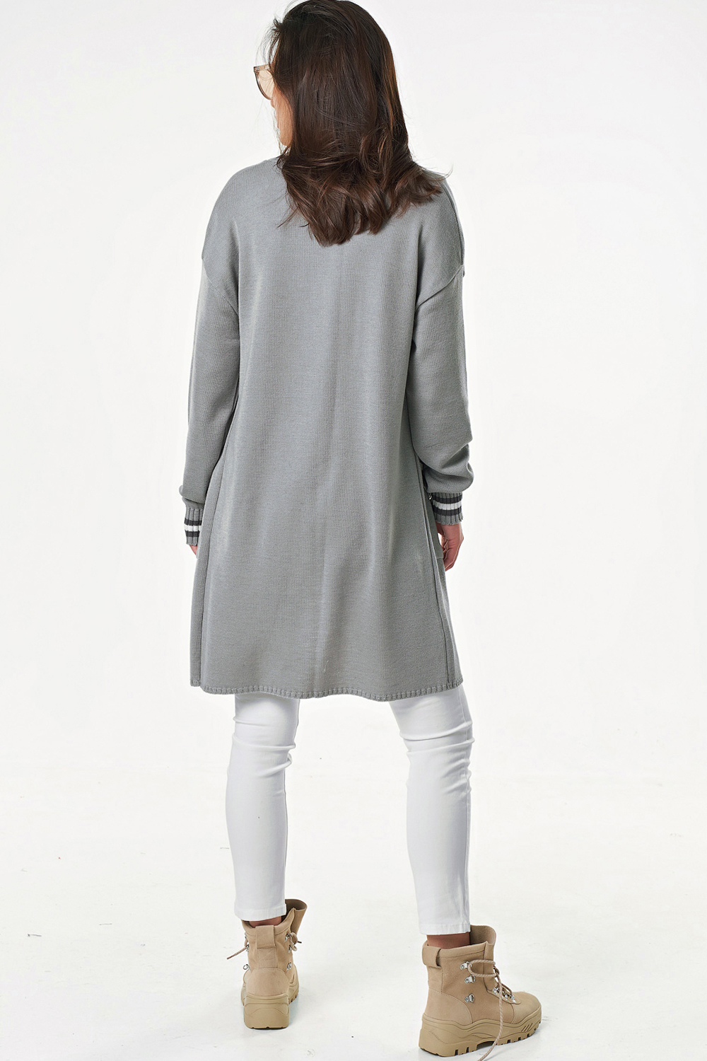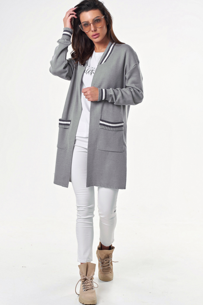 ст. цена2174руб.! Кардиган вязаный свободный с карманами серый