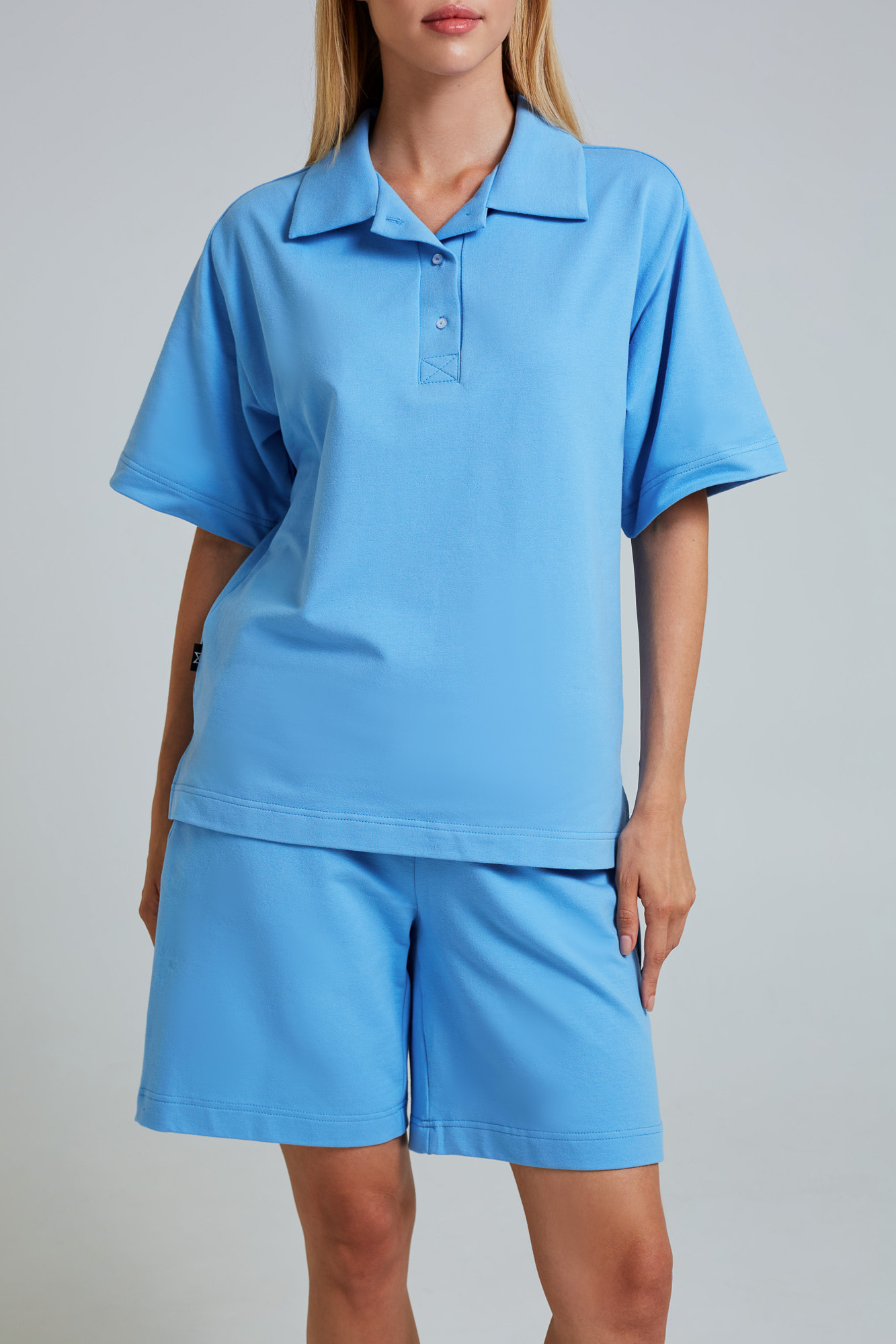 Футболка-поло свободного силуэта.