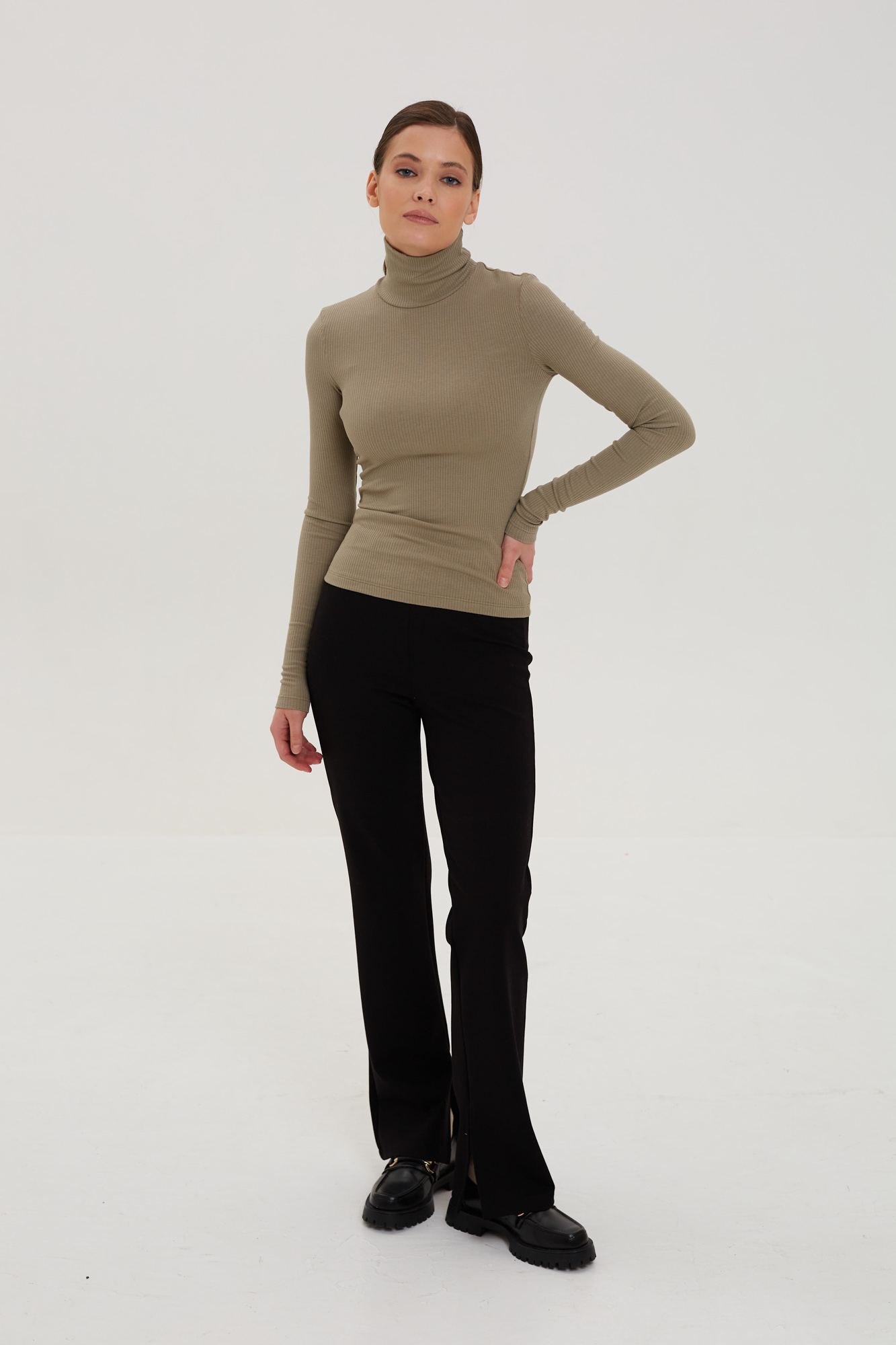 Стильные брюки с боковыми разрезами из премиального полотна НЕЙЛОН РОМА.