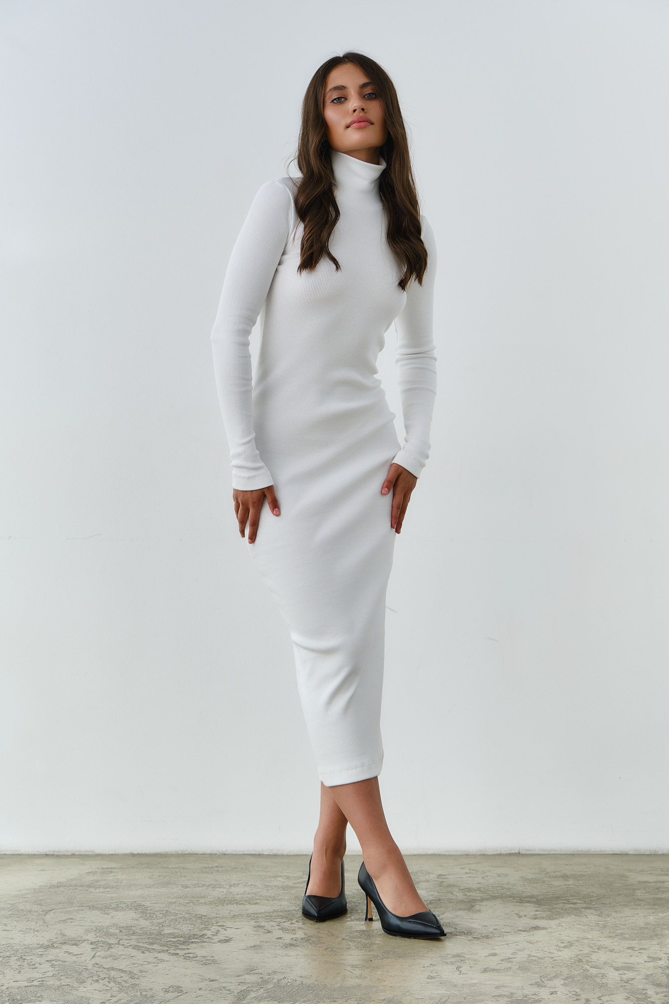 Идеальное минималистичное платье с высоким воротником.