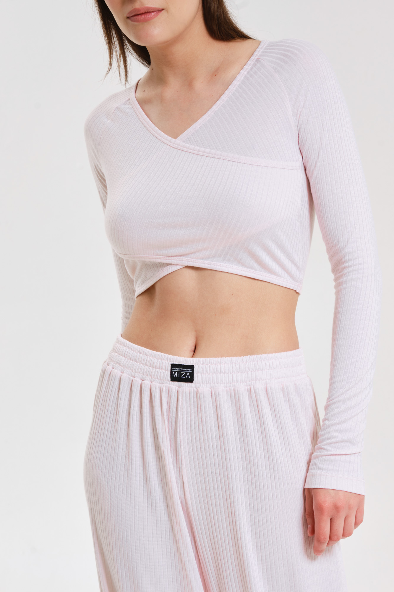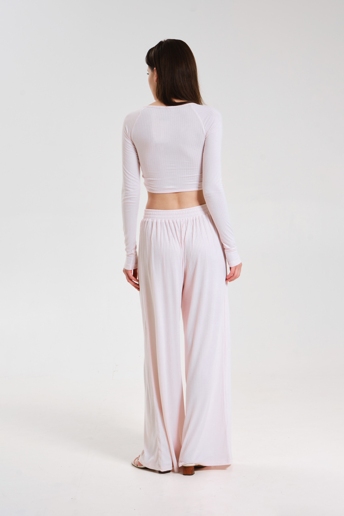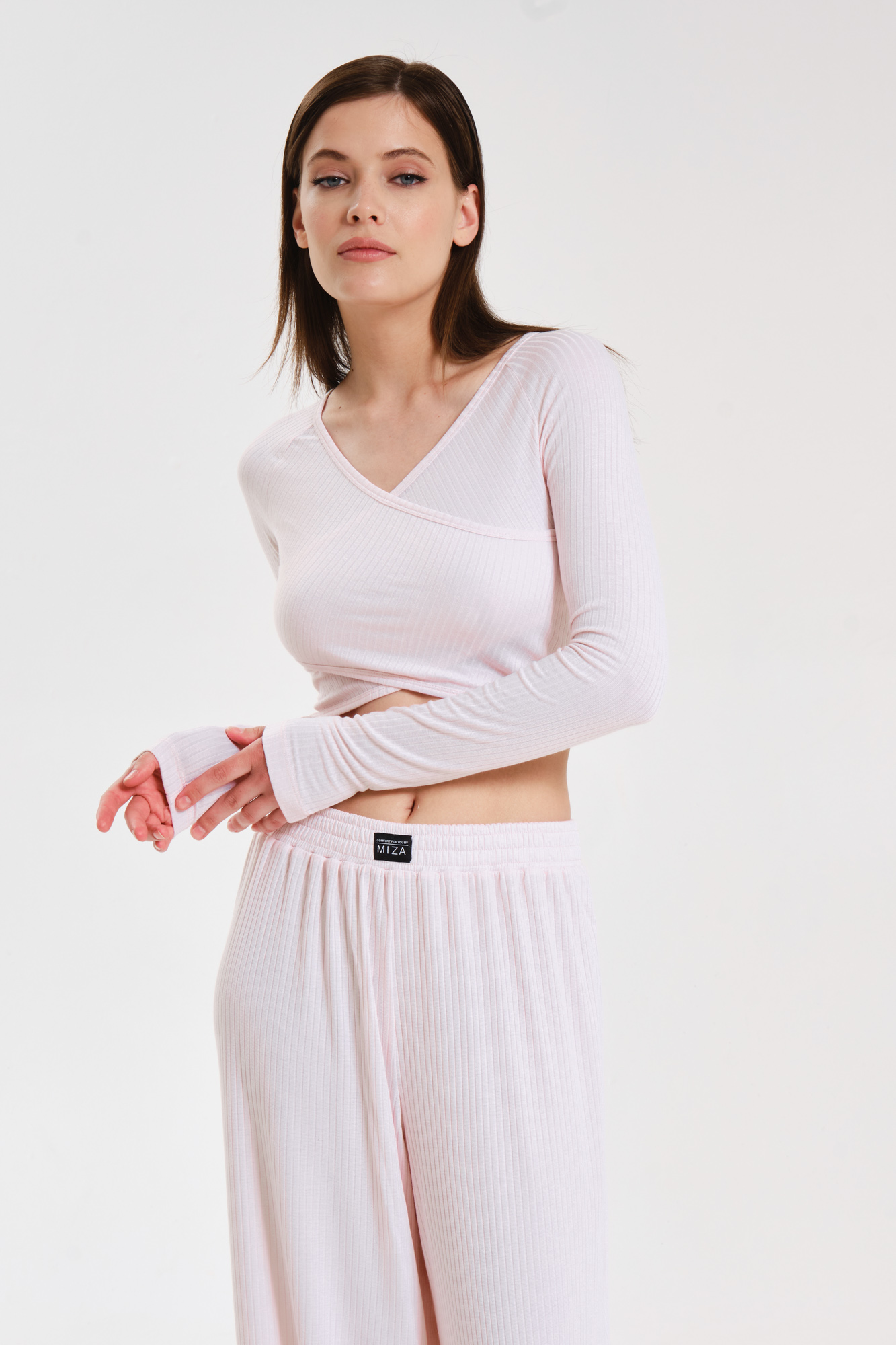 Состоит из широких брюк-палаццо и укороченного лонгслива.