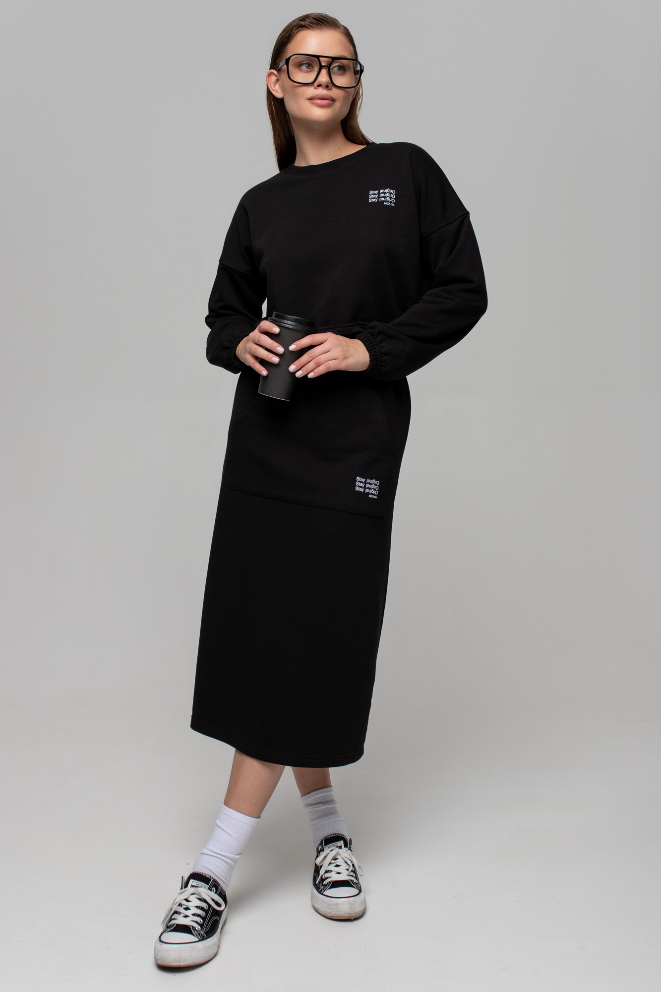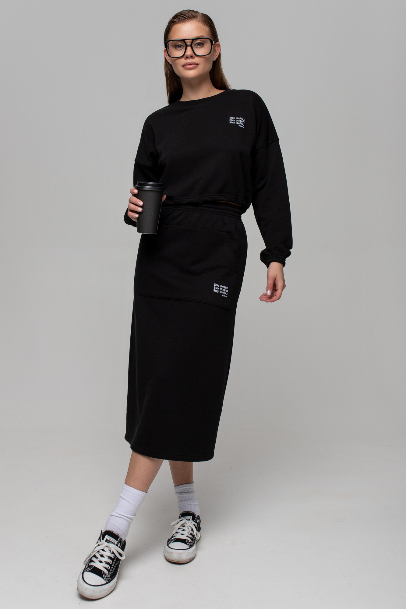 Стильный комплект с укороченным свитшотом и юбкой с карманом из мягкого плотного футера с петельной изнанкой.