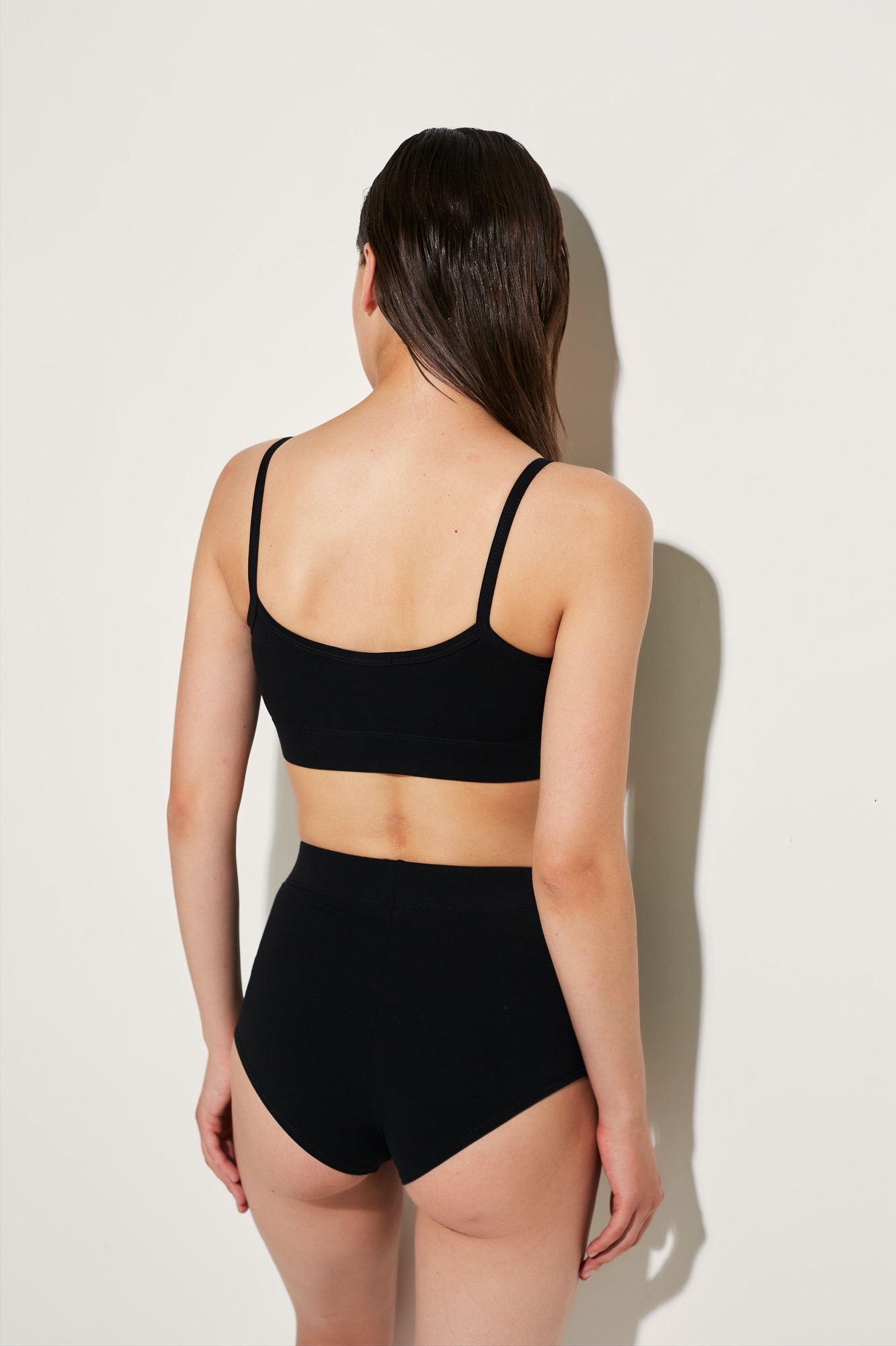 Низкий вырез для ног обработан эластичной строчкой, аккуратно лежит на теле, не деформируя силуэт.