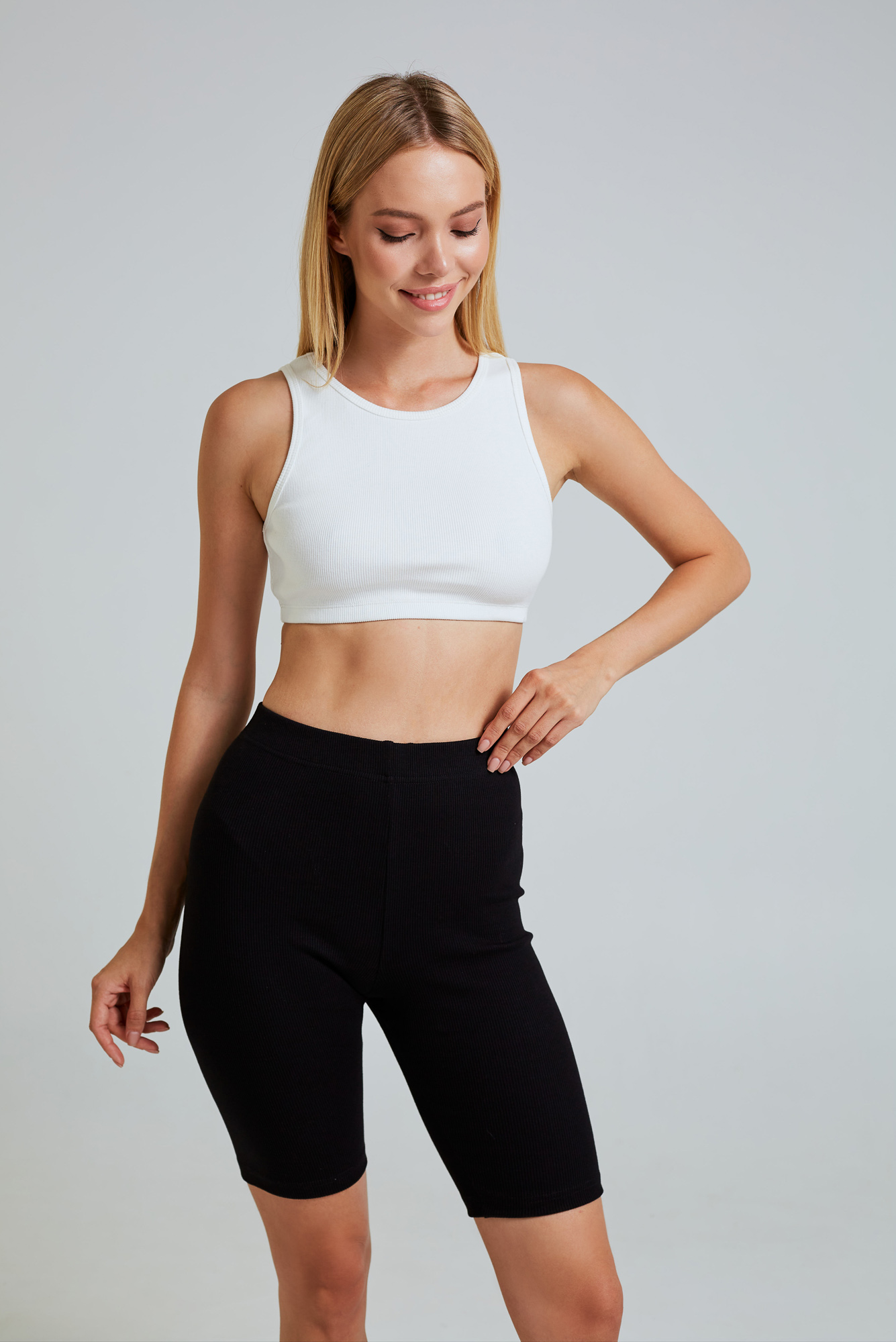 Базовый укороченный топ из кашкорсе с зауженной проймой.