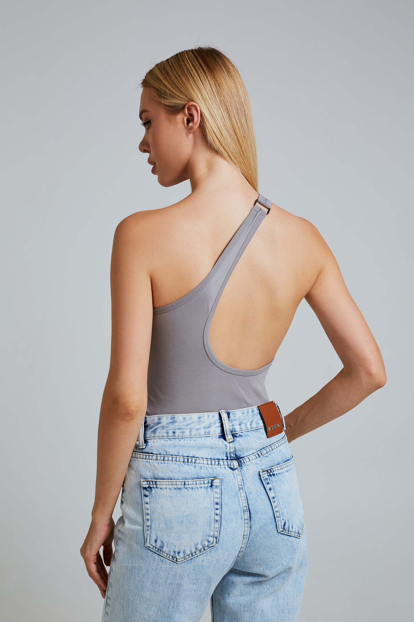 Стильная майка с ассиметричным плечом и открытой спиной для повседневных образов.