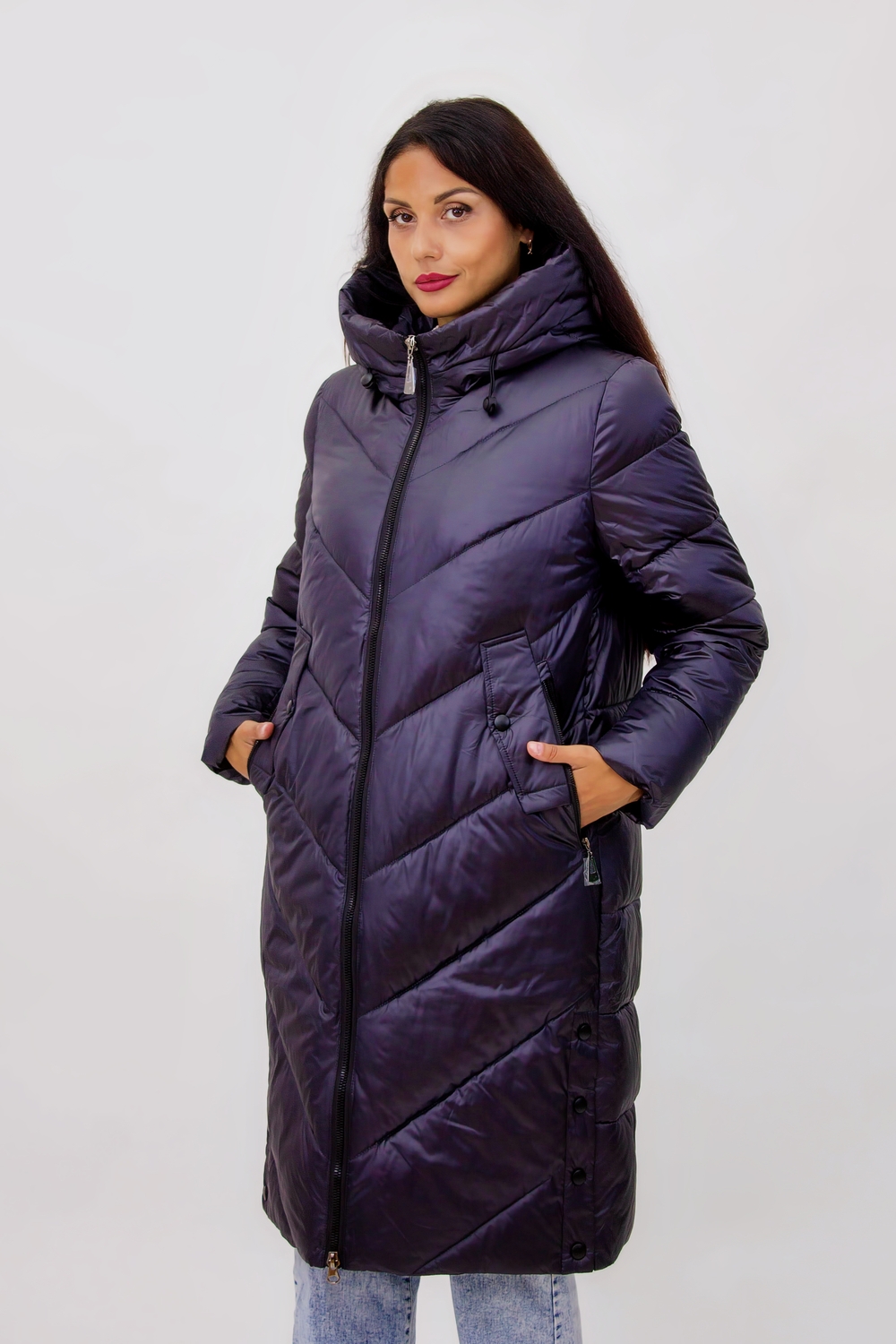 Глубокие карманы на молнии обеспечивают надежное место для хранения мелочей, таких как телефон или ключи, гарантируя их безопасность и доступность в любой момент. Цветовая палитра куртки радует глаз это глубокие, насыщенные оттенки с деликатным отблеском, которые привлекают внимание и подчеркивают ваш стиль. В такой куртке вы не просто останетесь теплой, но и будете выглядеть модно и современно. Наполнитель куртки холлофайбер, известный своими отличными теплоизоляционными свойствами. Он легкий и не утяжеляет одежду, но при этом обеспечивает тепло даже в самые холодные дни. Простеганная конструкция (не ультрастеп) гарантирует равномерное распределение утеплителя, исключая возможность его скапливания в отдельных участках. Эта технология делает куртку более долговечной и практичной, сохраняя её первоначальные свойства даже после многократного использования. Осмысленный дизайн стежки, выполненный под углом от боков к центру, визуально корректирует фигуру, создавая стройный силуэт. А кнопки внизу по бокам не только добавляют элемент удобства, но и растягиваются, что делает передвижение более комфортным особенно в общественном транспорте или при посадке в автомобиль. Эта куртка не просто одежда, а ваш надежный защитник от зимних холодов, сочетающий в себе современные технологии и стильный дизайн. Позвольте себе комфорт и уют в любую погоду! Не упустите возможность дополнить свой гардероб этой великолепной курткой, которая станет вашим верным другом в зимних приключениях.