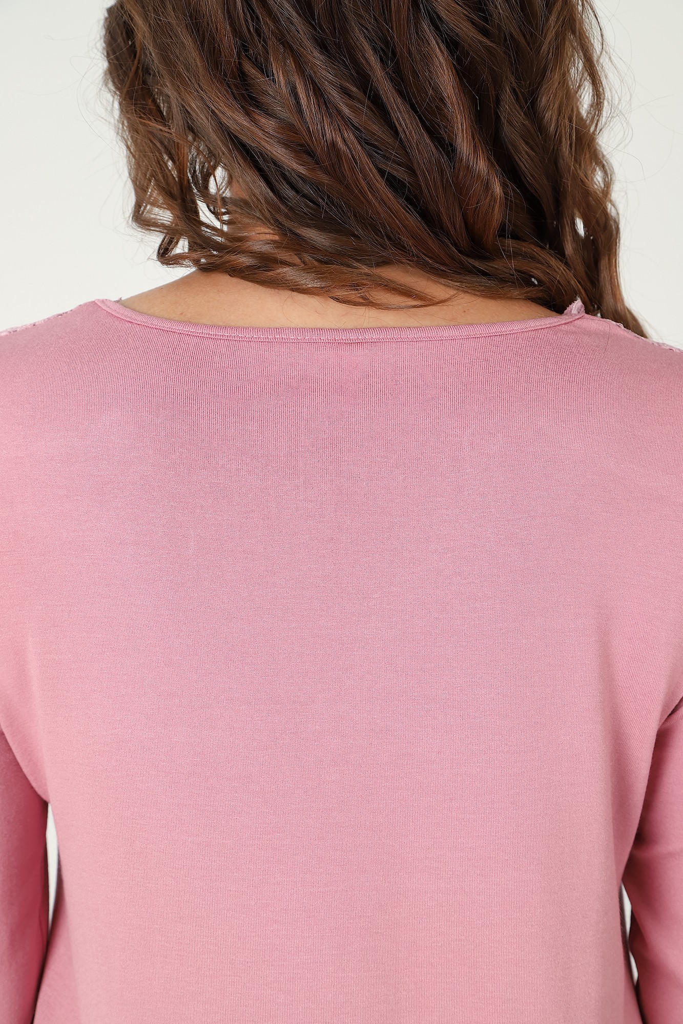 Сорочка женская из гладкокрашеного трикотажного вискозного полотна, прямого силуэта, с длинными втачными рукавами и горловиной V-образной формы. Перед с притачной кружевной кокеткой и декоративным бантиком из узкой атласной ленты в центре соединительного шва.