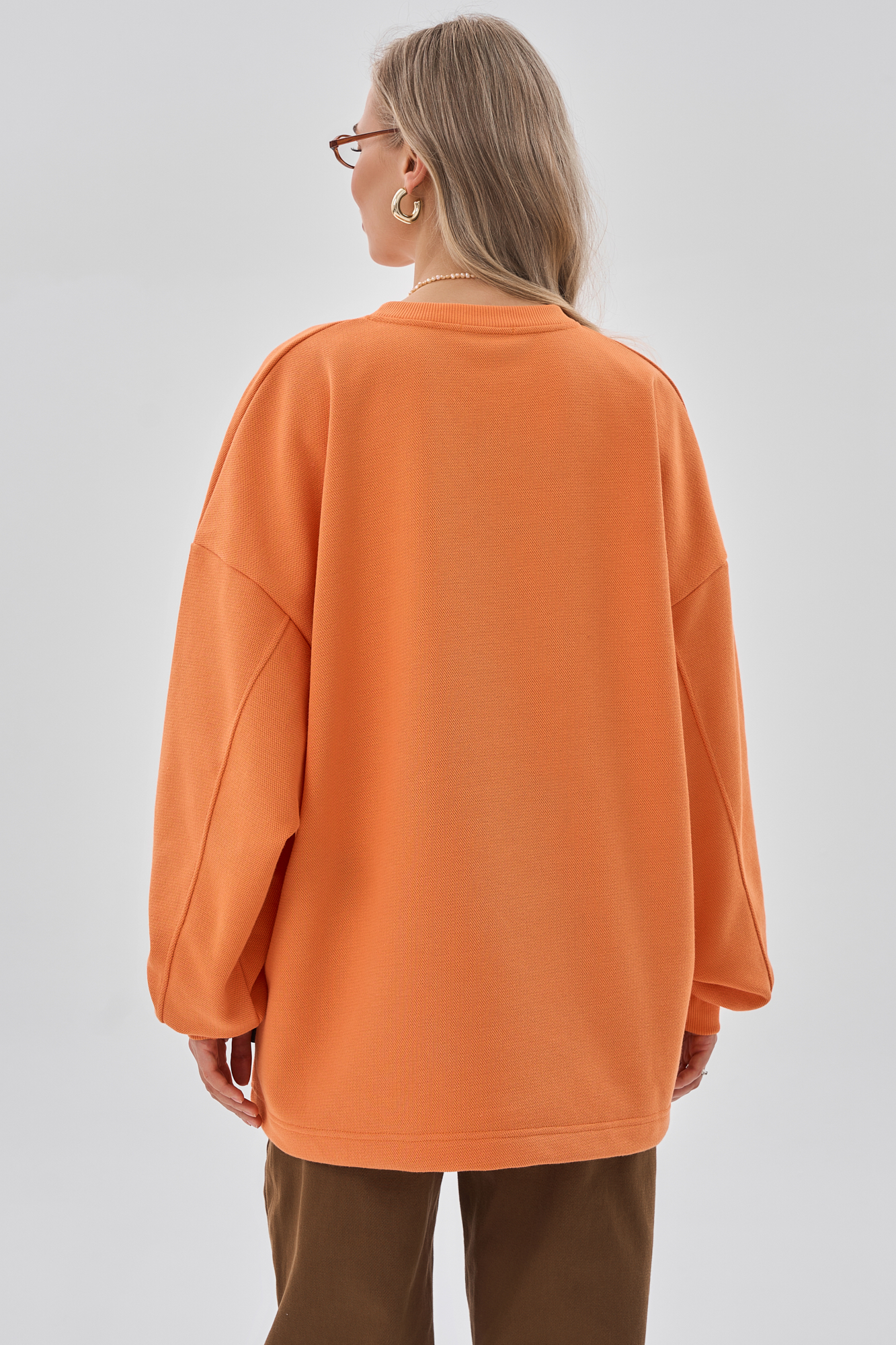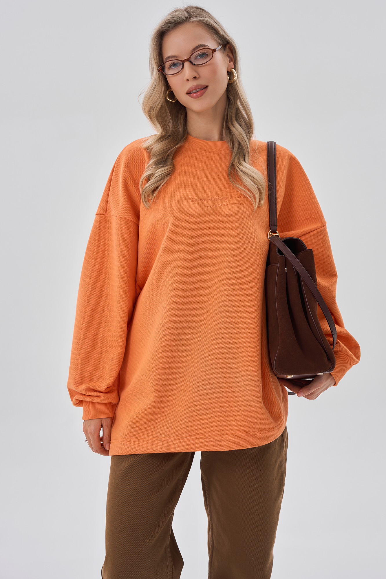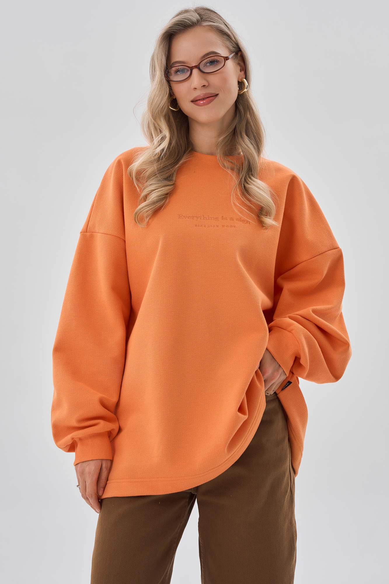 Удлиненный свитшот объемного кроя, выполнен из премиального трикотажа с начесом и фактурной лицевой стороной.