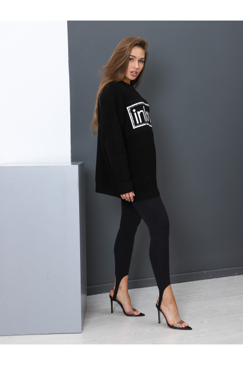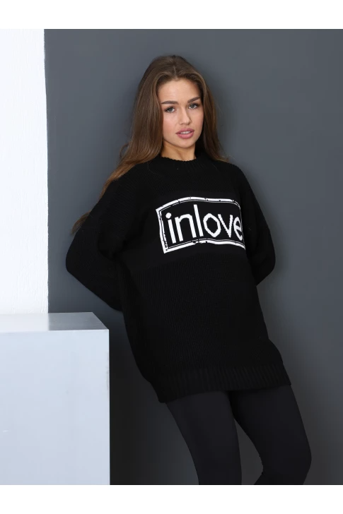 Свободный женский свитер крупной вязки с надписью INLOVE