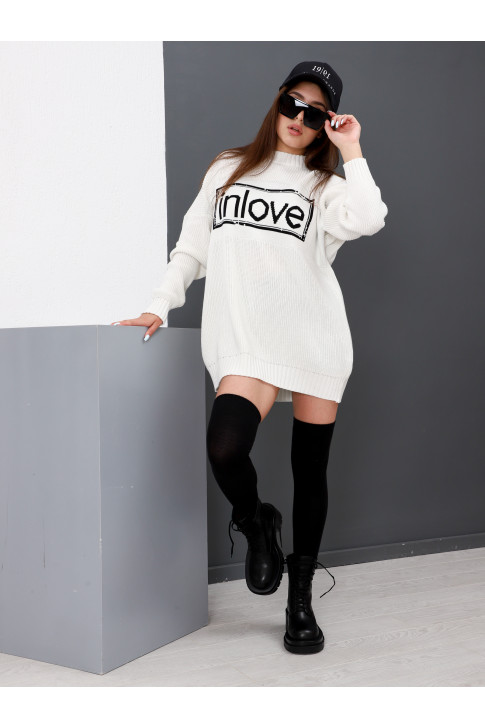 Свободный женский свитер крупной вязки с надписью INLOVE