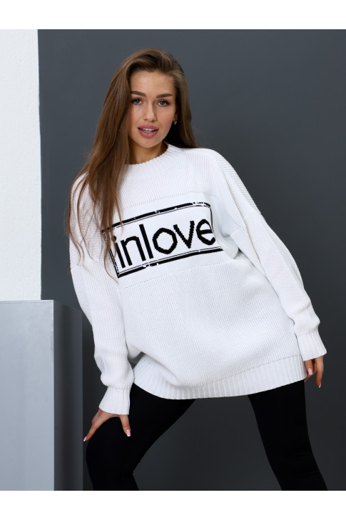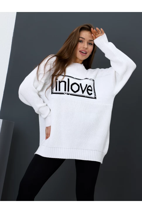 Свободный женский свитер крупной вязки с надписью INLOVE