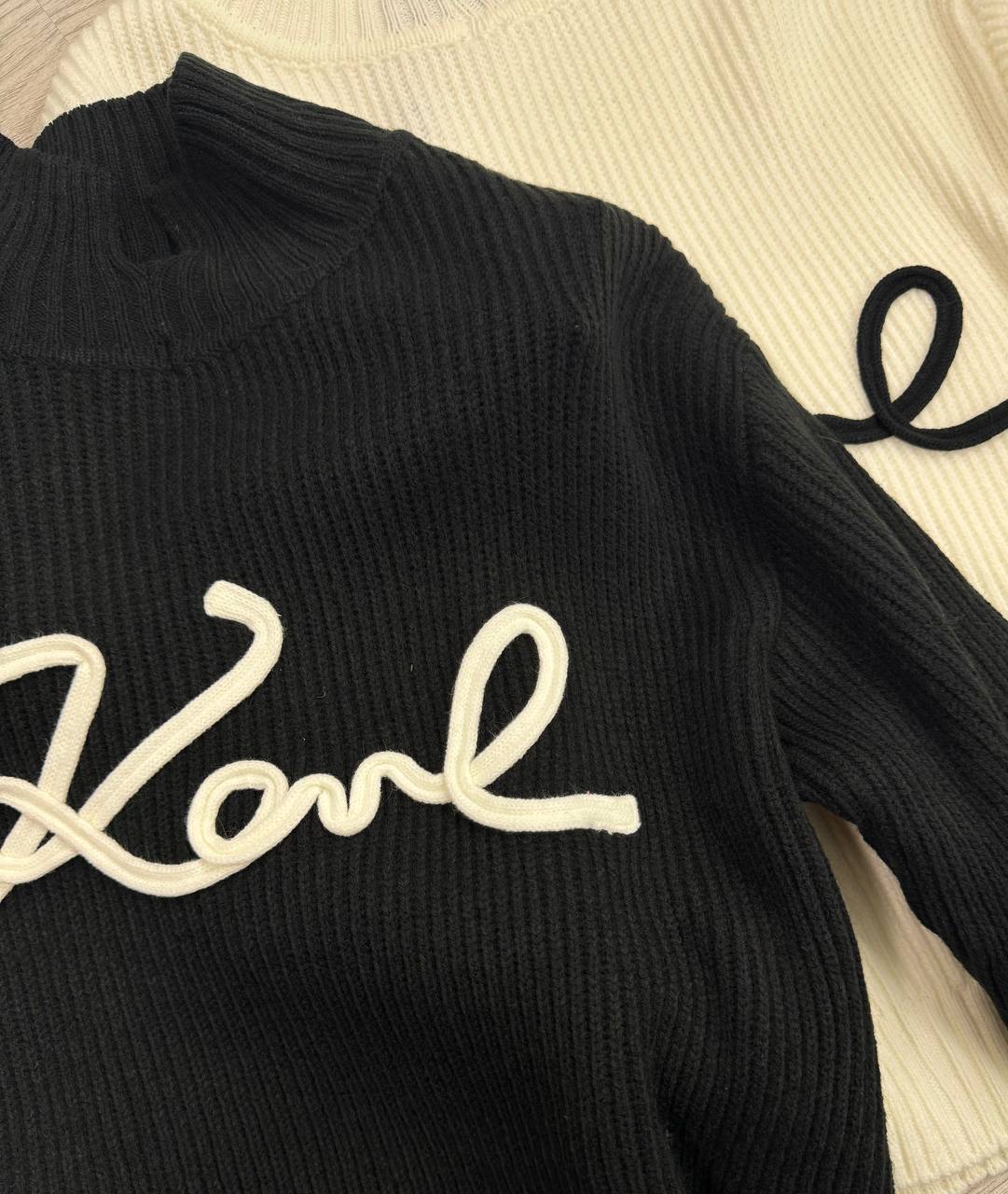 Этот роскошный свитер, выполненный с использованием ребристого трикотажа, придающего изделию изысканный вид, отличается уникальным фигурным вырезом на горловине и украшен яркой вышивкой с подписью KARL на груди.