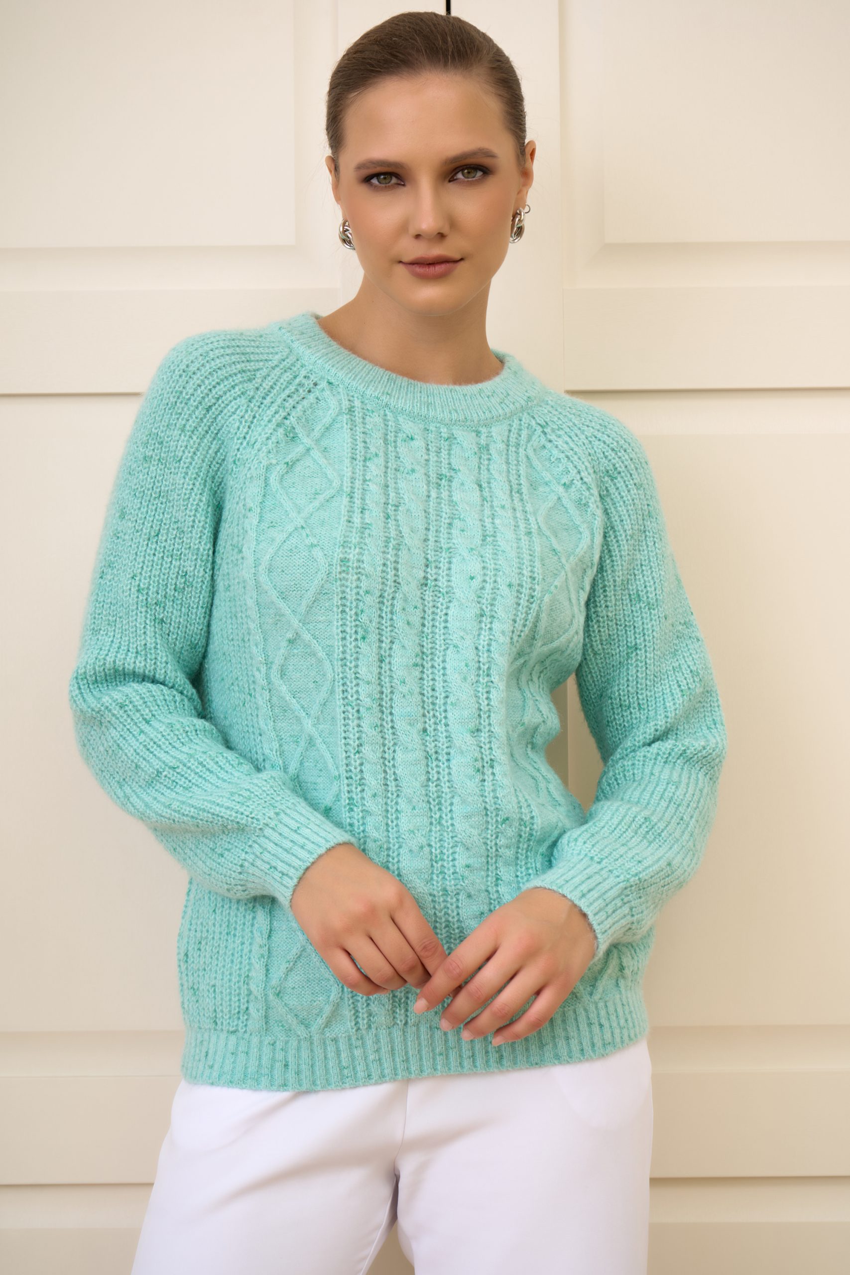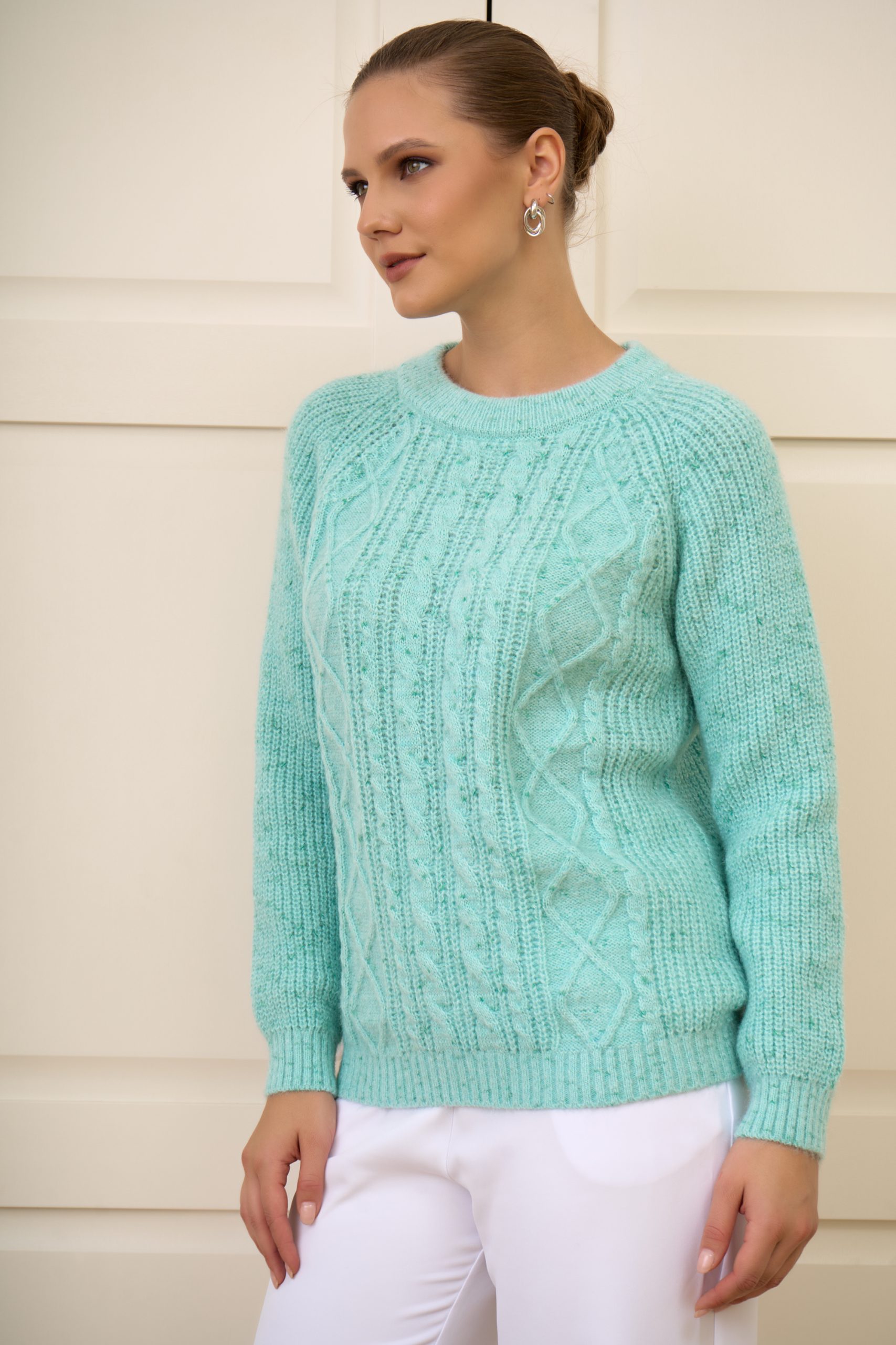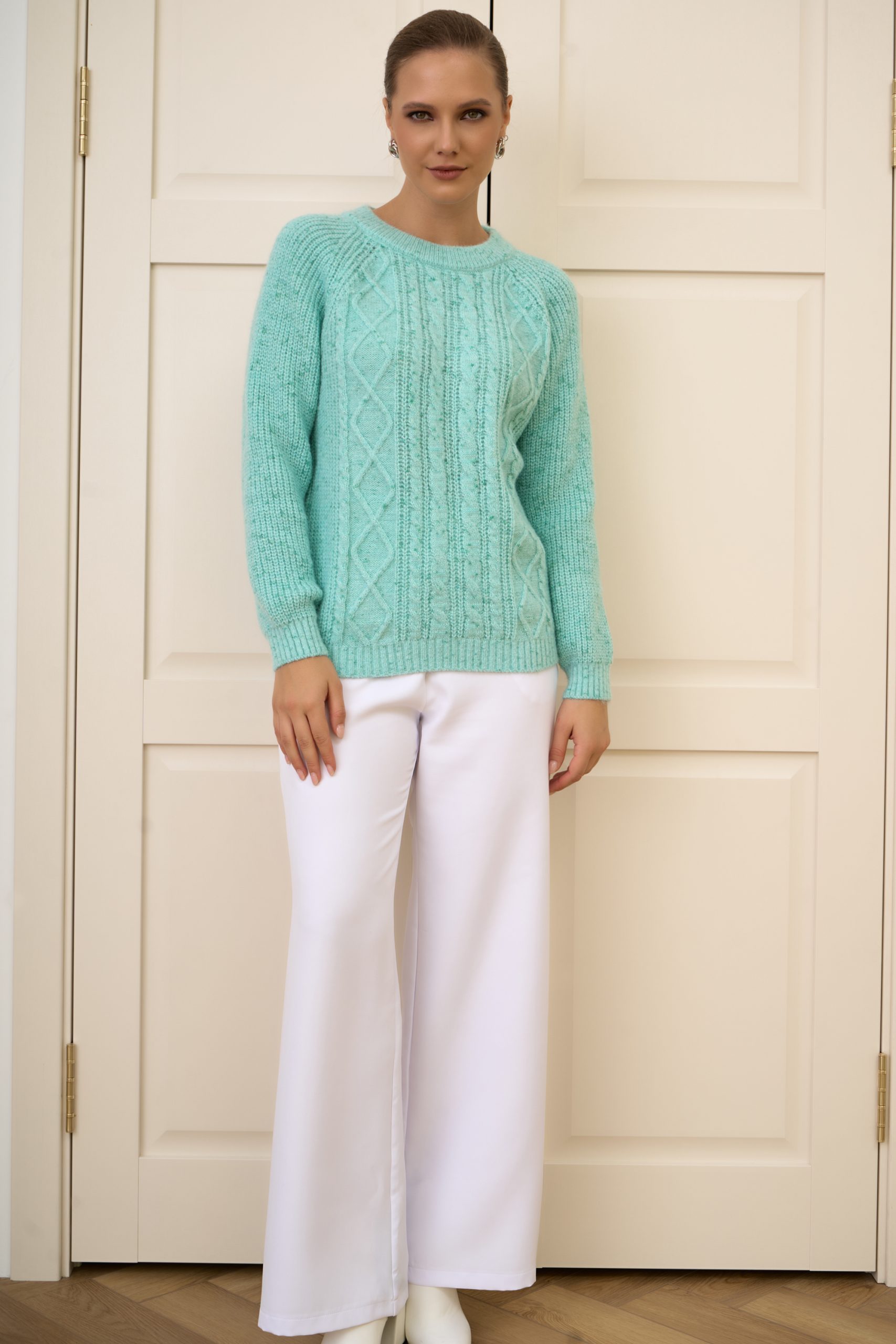 Нежный и уютный свитер с фактурным вязаным узором — идеальное сочетание женственности и комфорта.