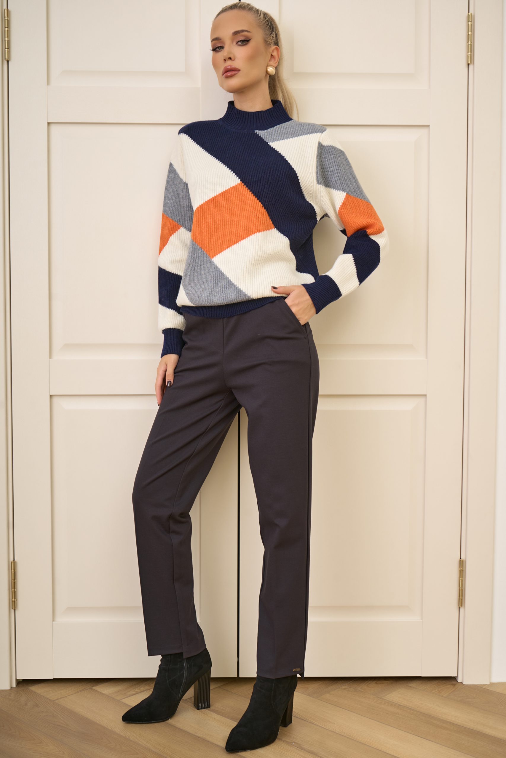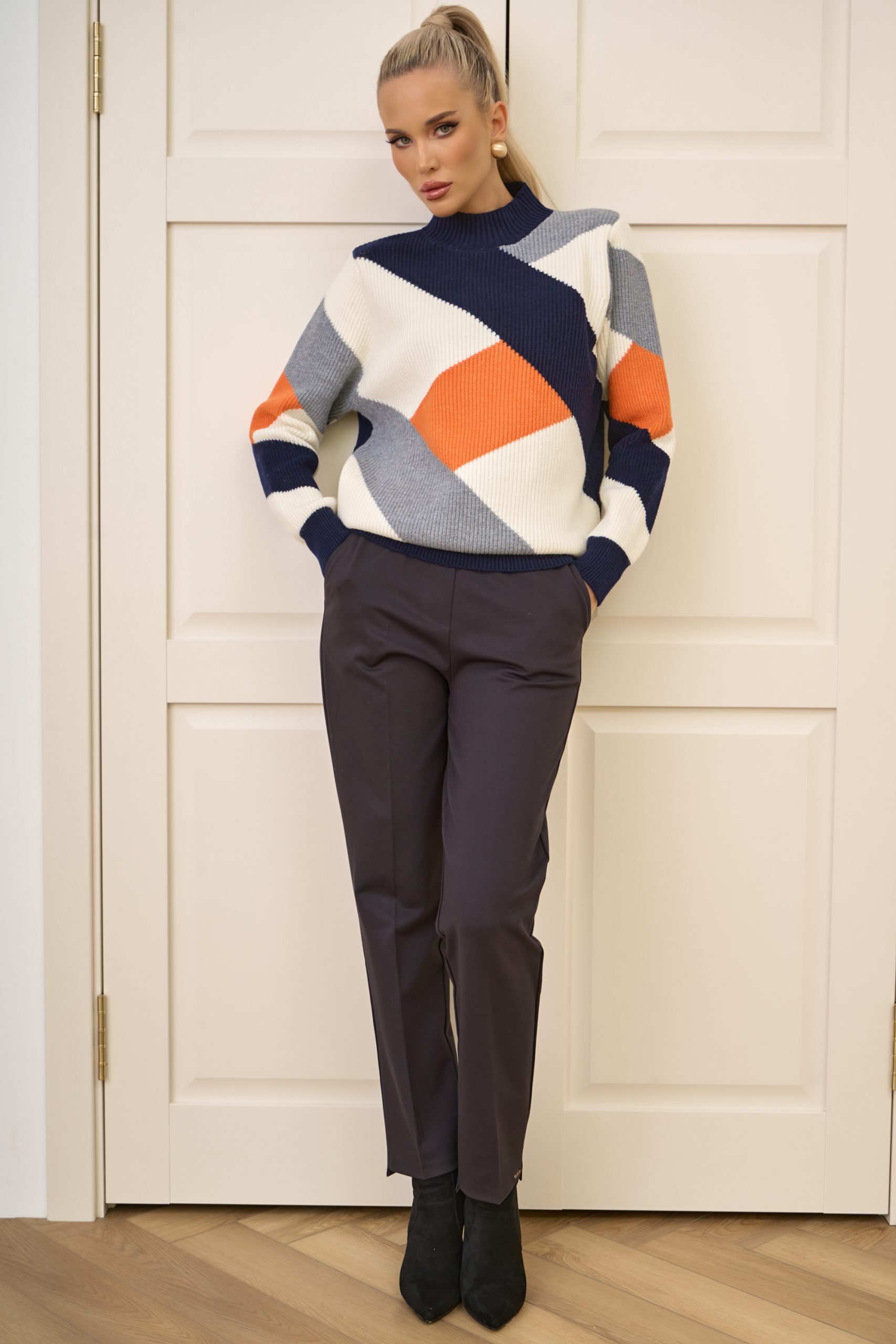 Стильный вязаный свитер “Коди” из рельефного трикотажа. Универсальные оттенки дополнены контрастными цветными блоками, которые делают образ современным и выразительным.