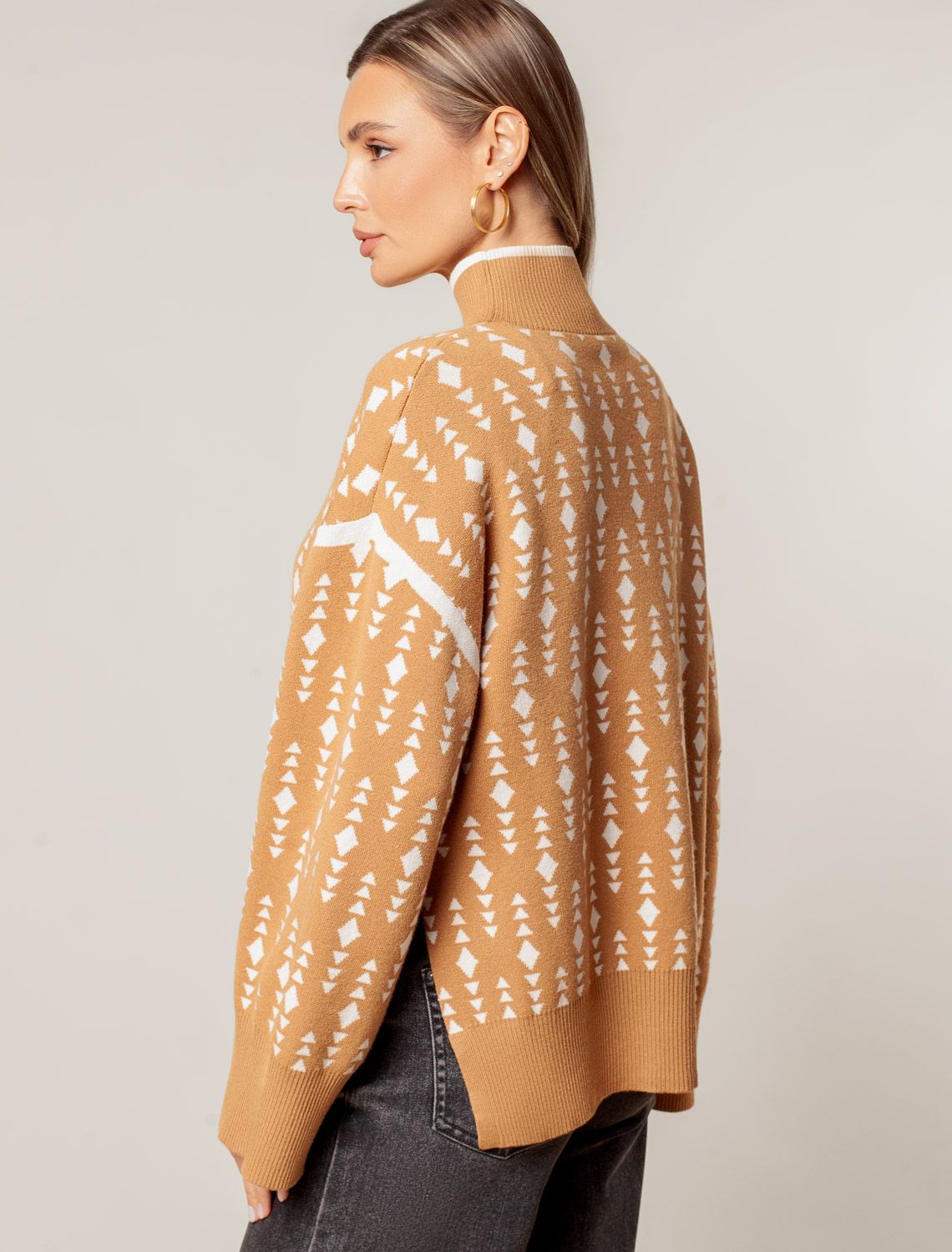 Свитер с боковыми разрезами жаккардовой вязки с кашемиром