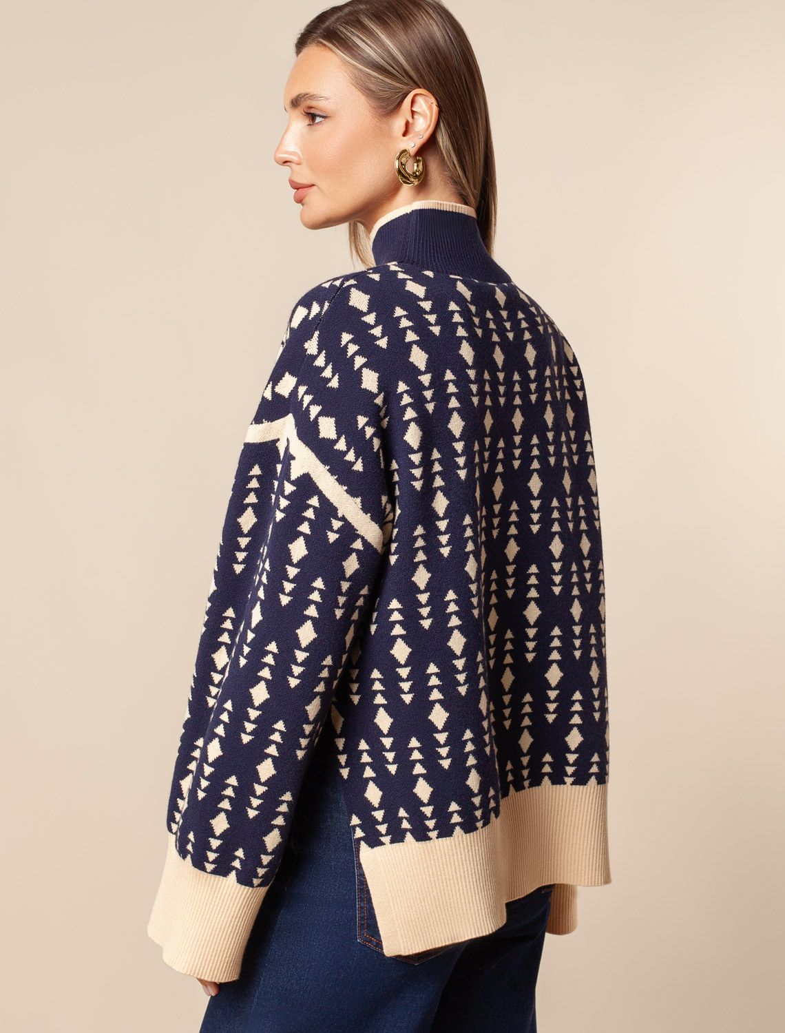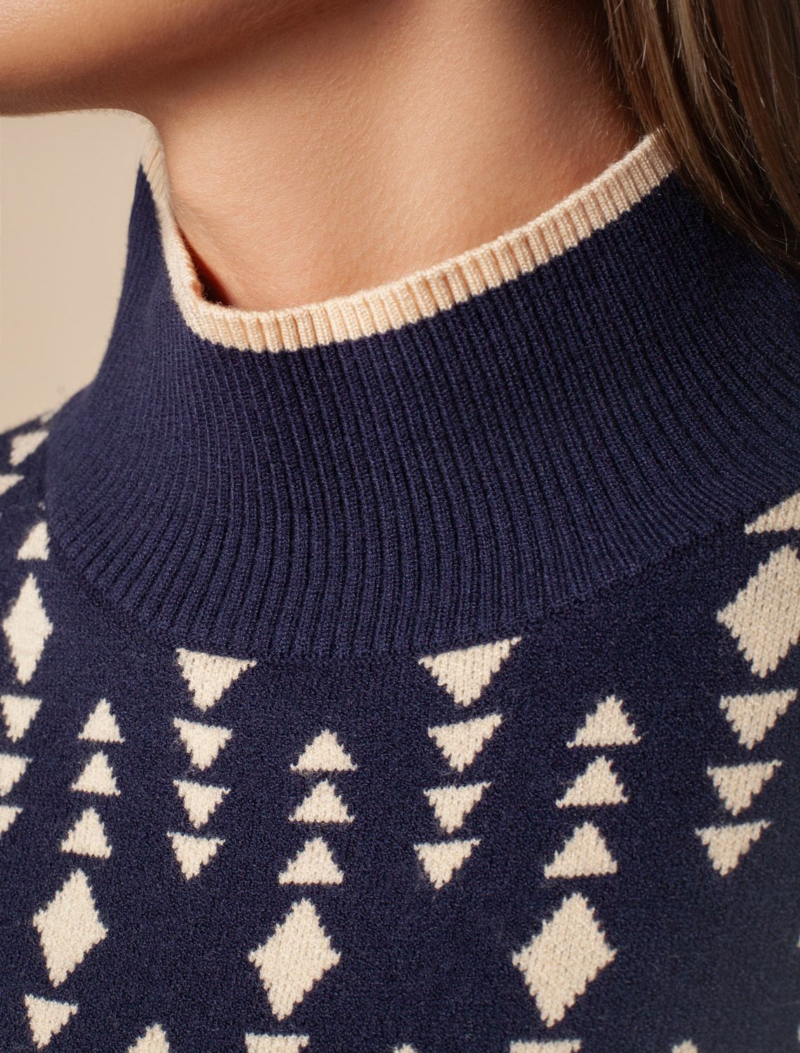 Свитер с боковыми разрезами жаккардовой вязки с кашемиром