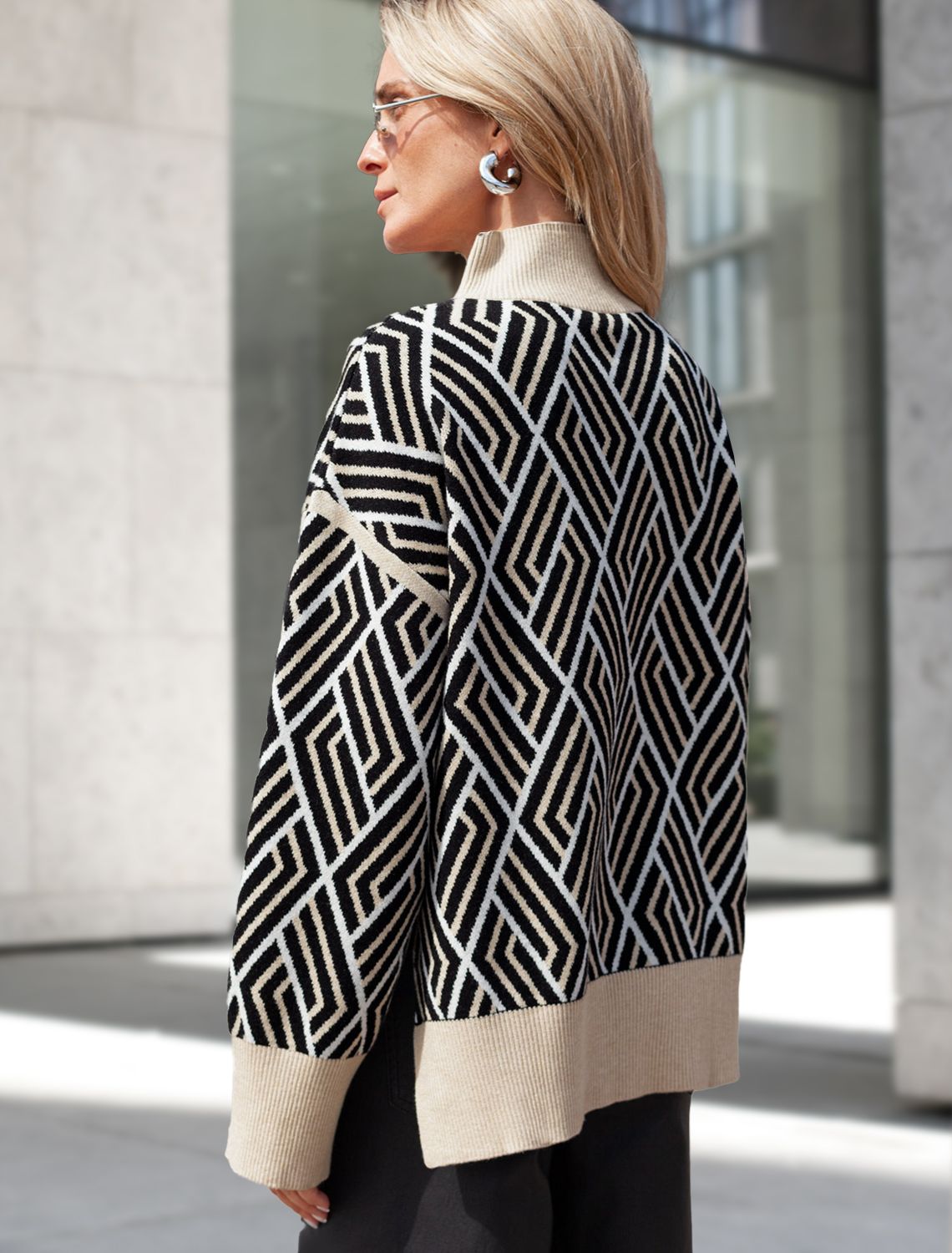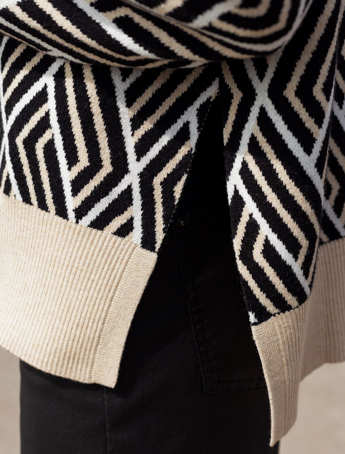 Свитер с боковыми разрезами жаккардовой вязки с кашемиром