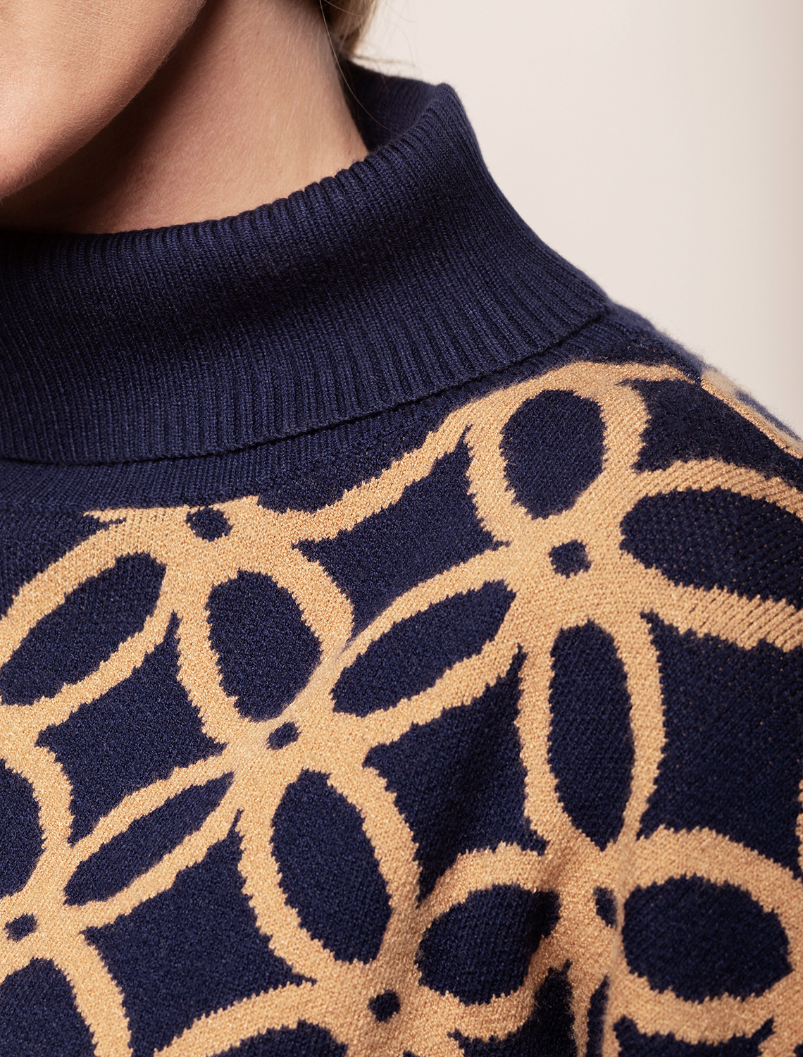 Свитер с боковыми разрезами жаккардовой вязки с кашемиром
