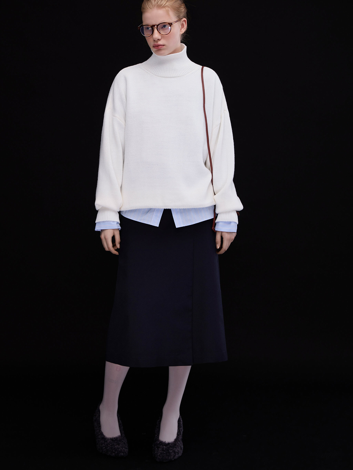 Изготовленный из мягкой шерсти мериноса с добавлением акрила, свитер приятно ощущается на теле. Его можно легко стилизовать с платьями или носить как самостоятельный элемент образа в сочетании с брюками, юбками или джинсами.