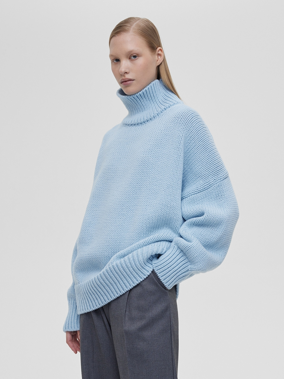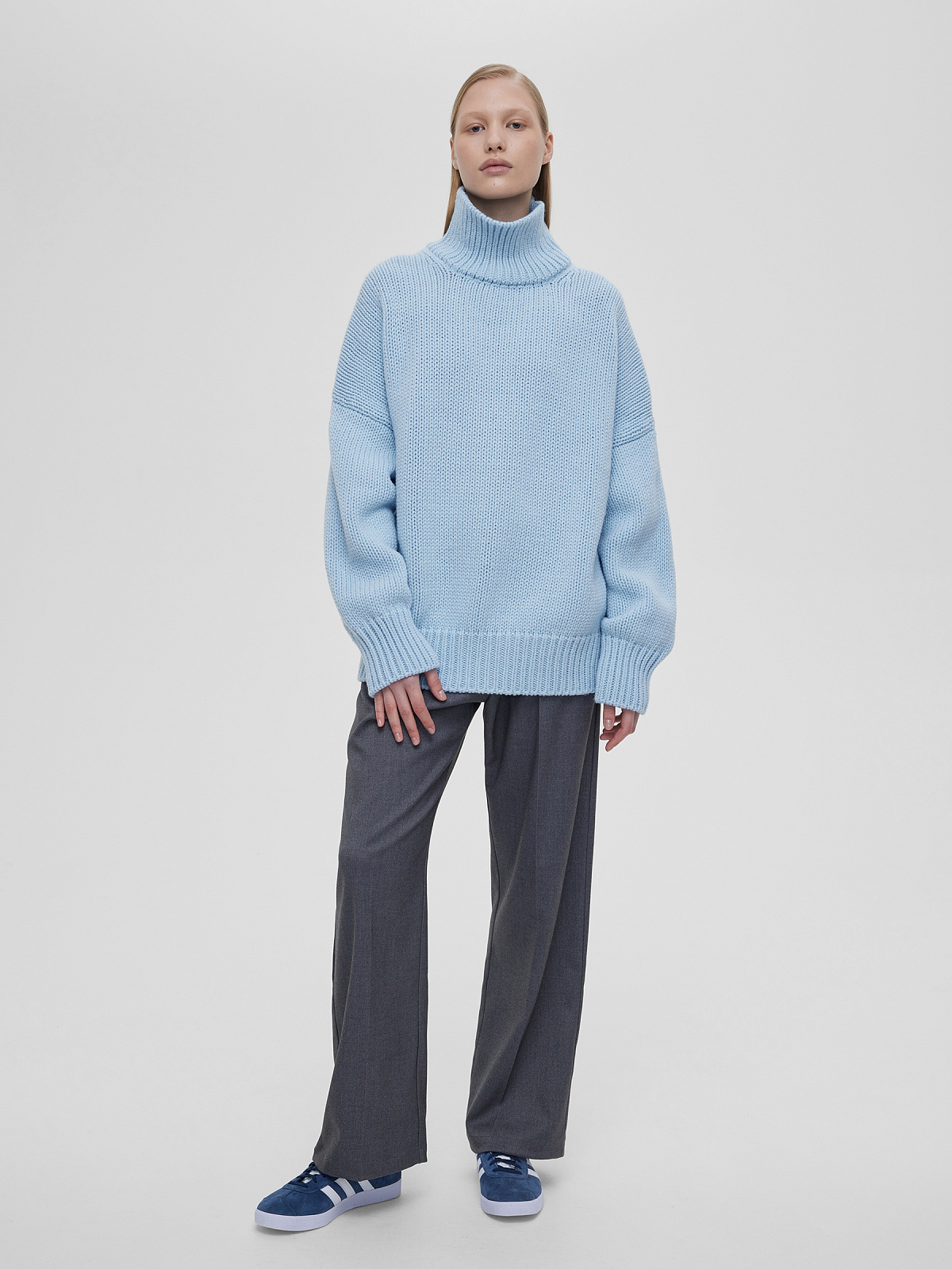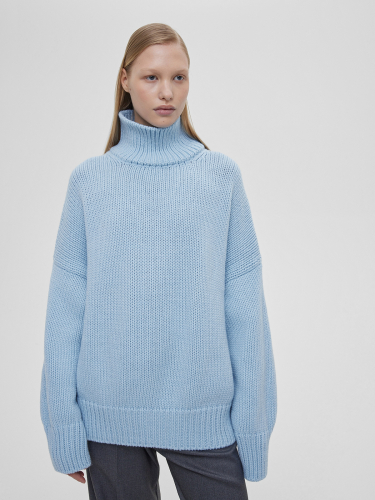 Свитер свободного кроя крупной вязки, голубой