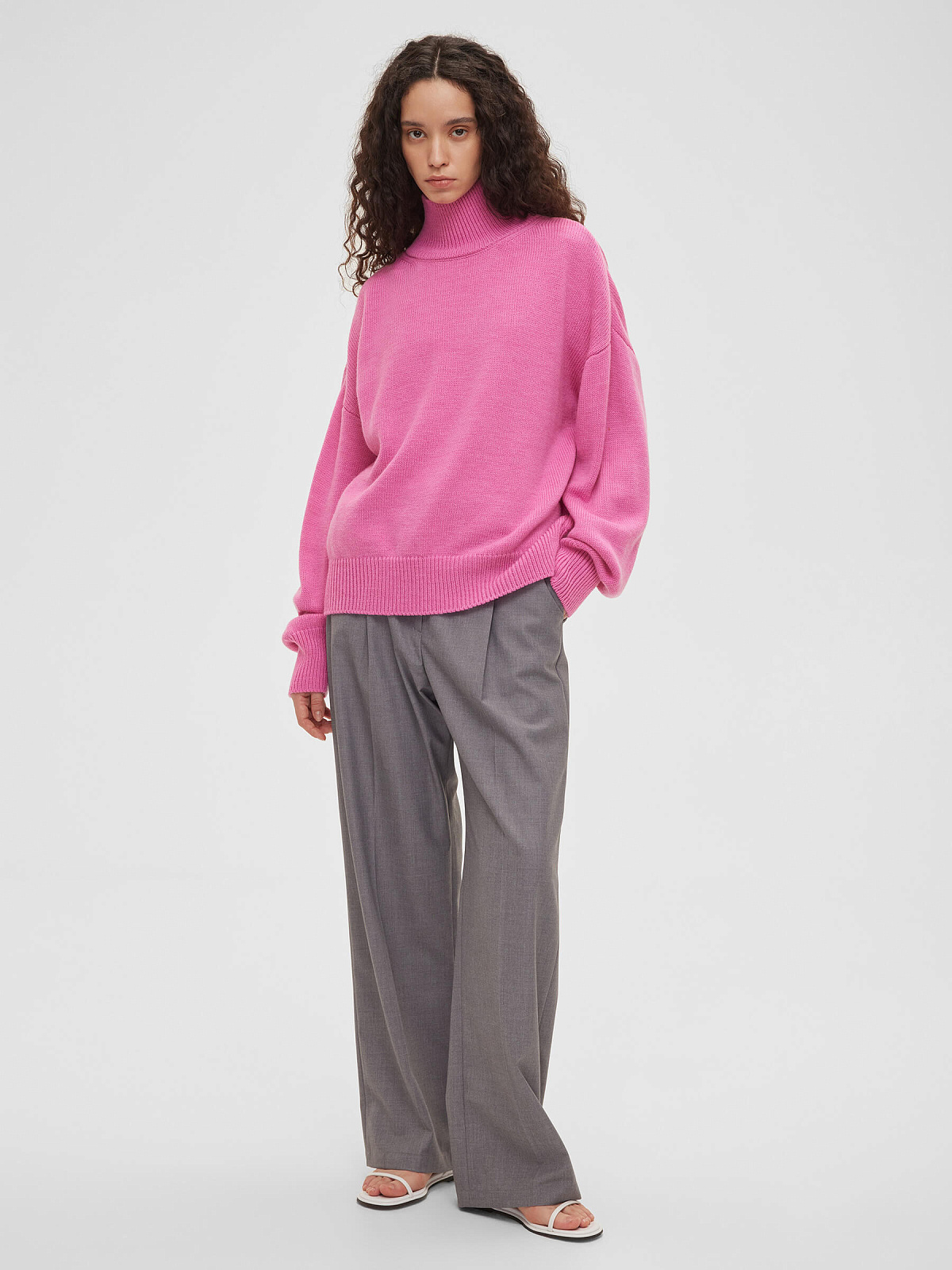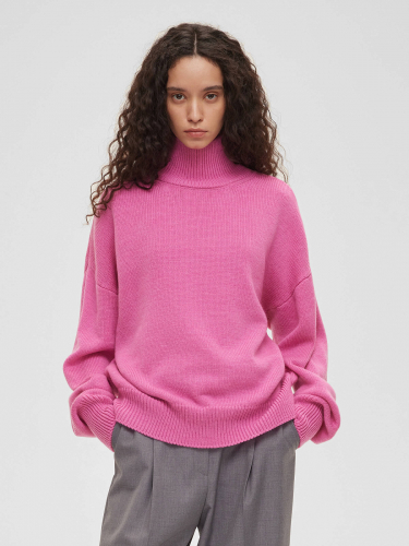 Свитер свободного кроя со спущенной линией плеча — наш неизменный хит продаж уже 9 лет. Дизайн с классическим воротником-стойкой и резинками на рукавах, а также по низу изделия делает свитер универсальной вещью для вашего базового гардероба.