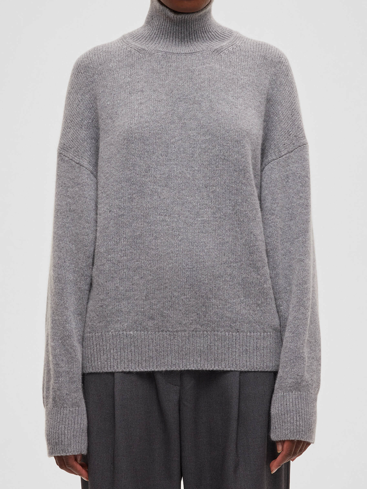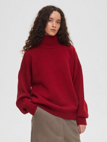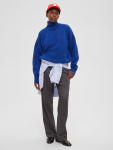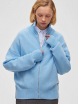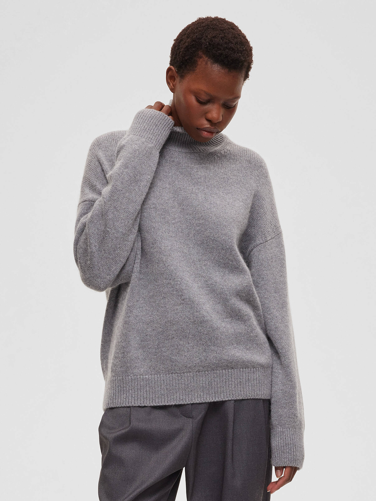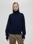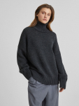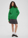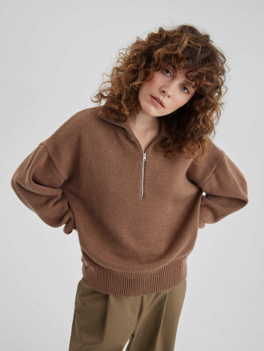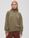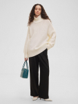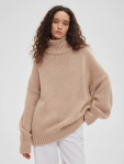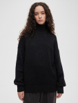 Свитер свободного кроя со спущенным плечом, воротником-стойкой, резинкой на рукавах и по низу изделия. Комбинация пуха ангорского кролика и тонкой шерсти в составе создают текстуру с характерным ворсом.
