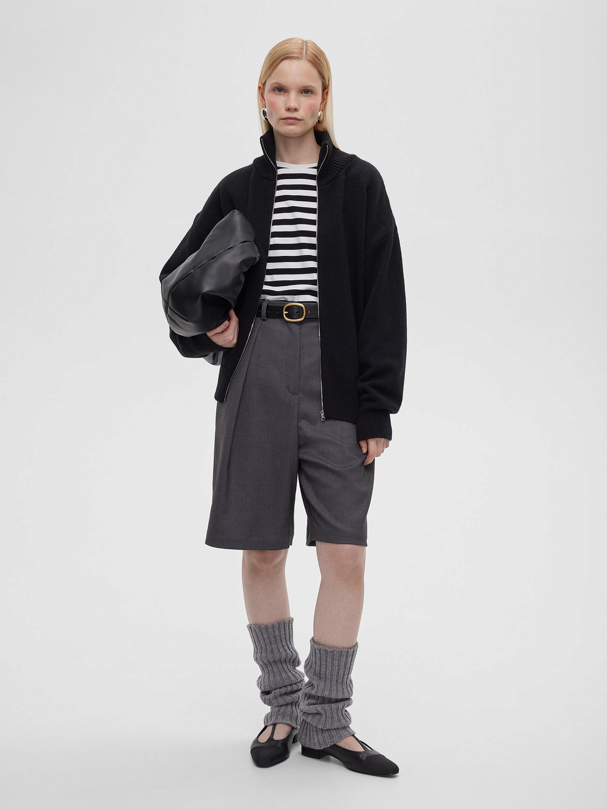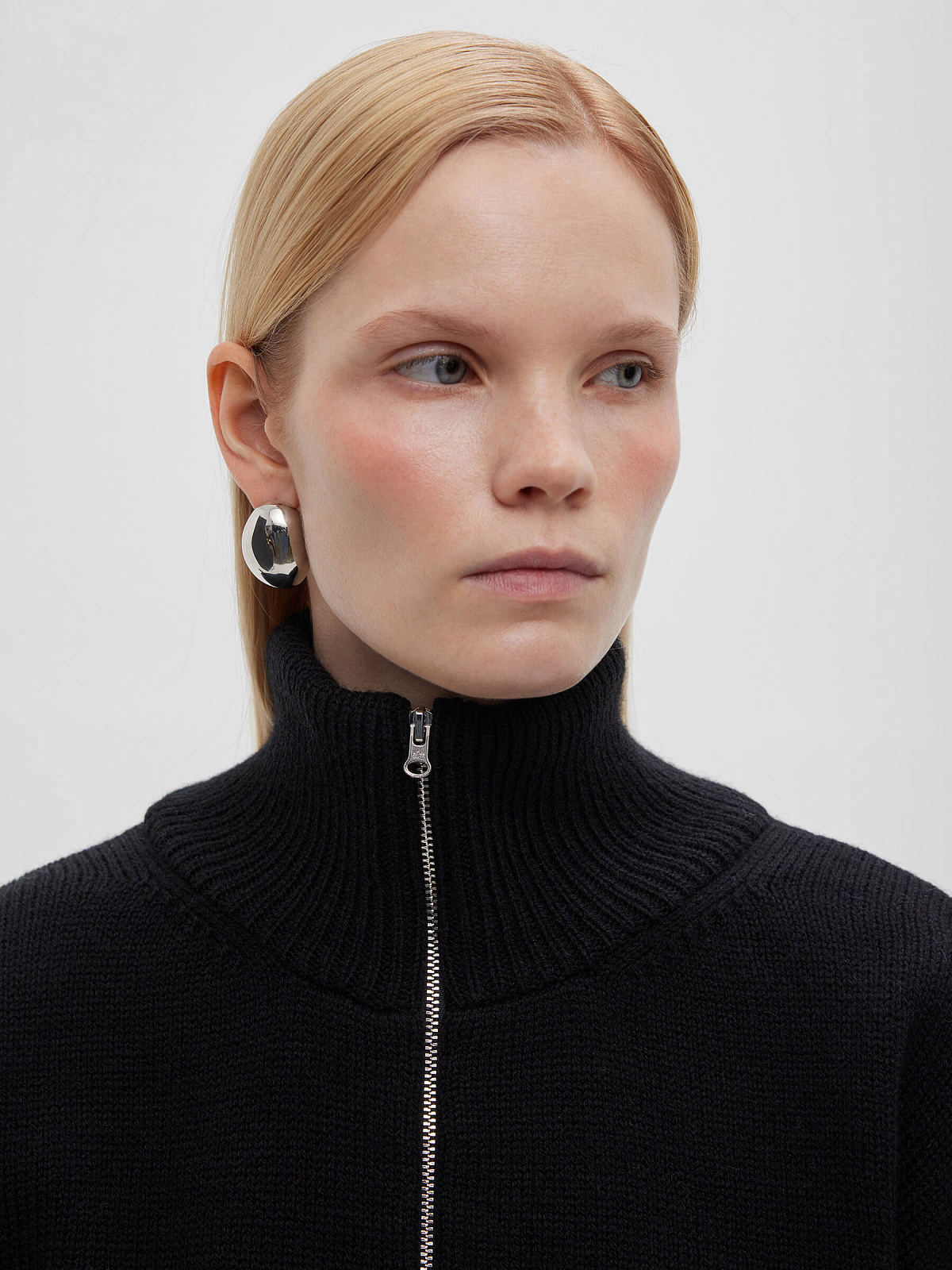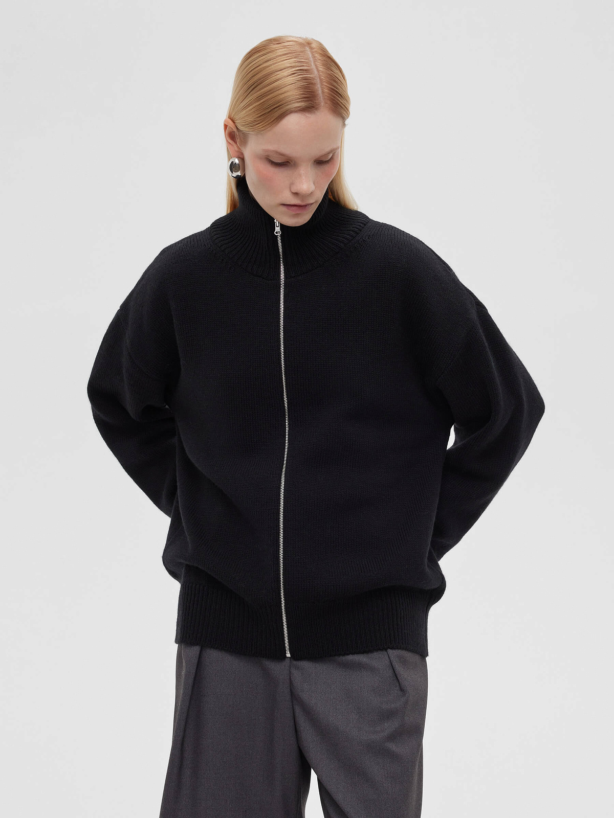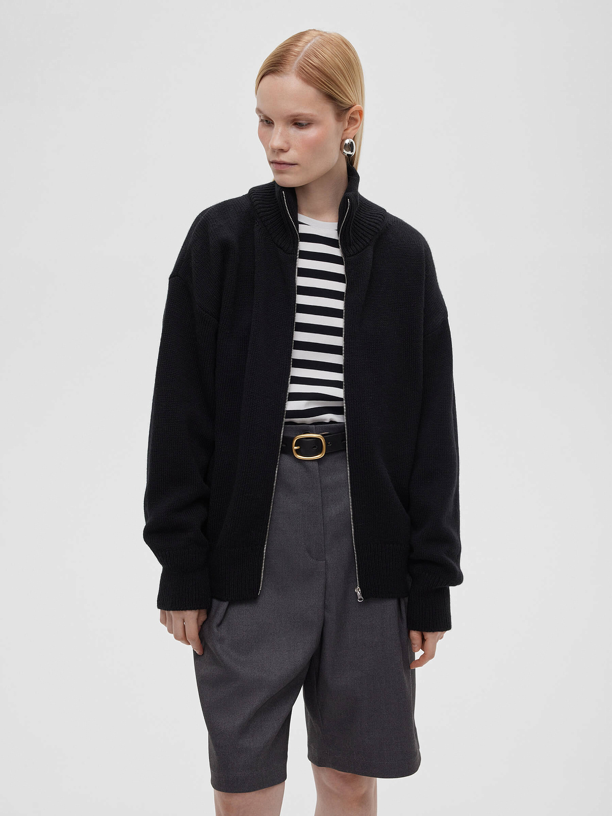 Эта модель свитера объединяет в себе нежность классического стиля и дерзость разъемного замка, что делает его уникальным элементом вашего гардероба. Благодаря необычному фасону свитер легко вписывается в разнообразные образы - от спортивного шика до романтичного женственного стиля.