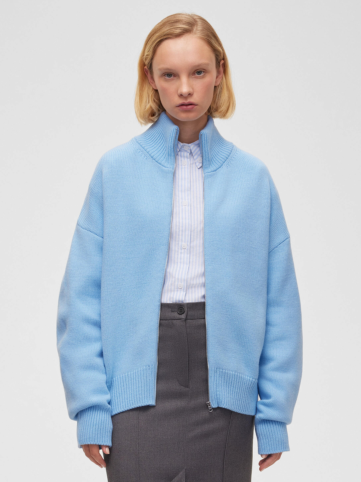 Изготовленный из мягкой шерсти мериноса с добавлением акрила свитер приятно ощущается на коже и обеспечивает комфорт в любое время года. Воротник-стойка и резинки на рукавах и по низу изделия создают аккуратный силуэт, существующий вне времени моды.