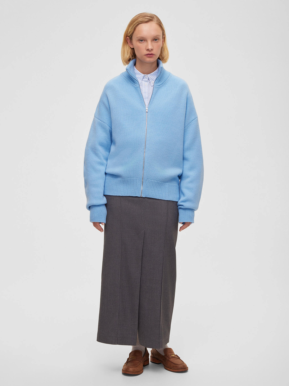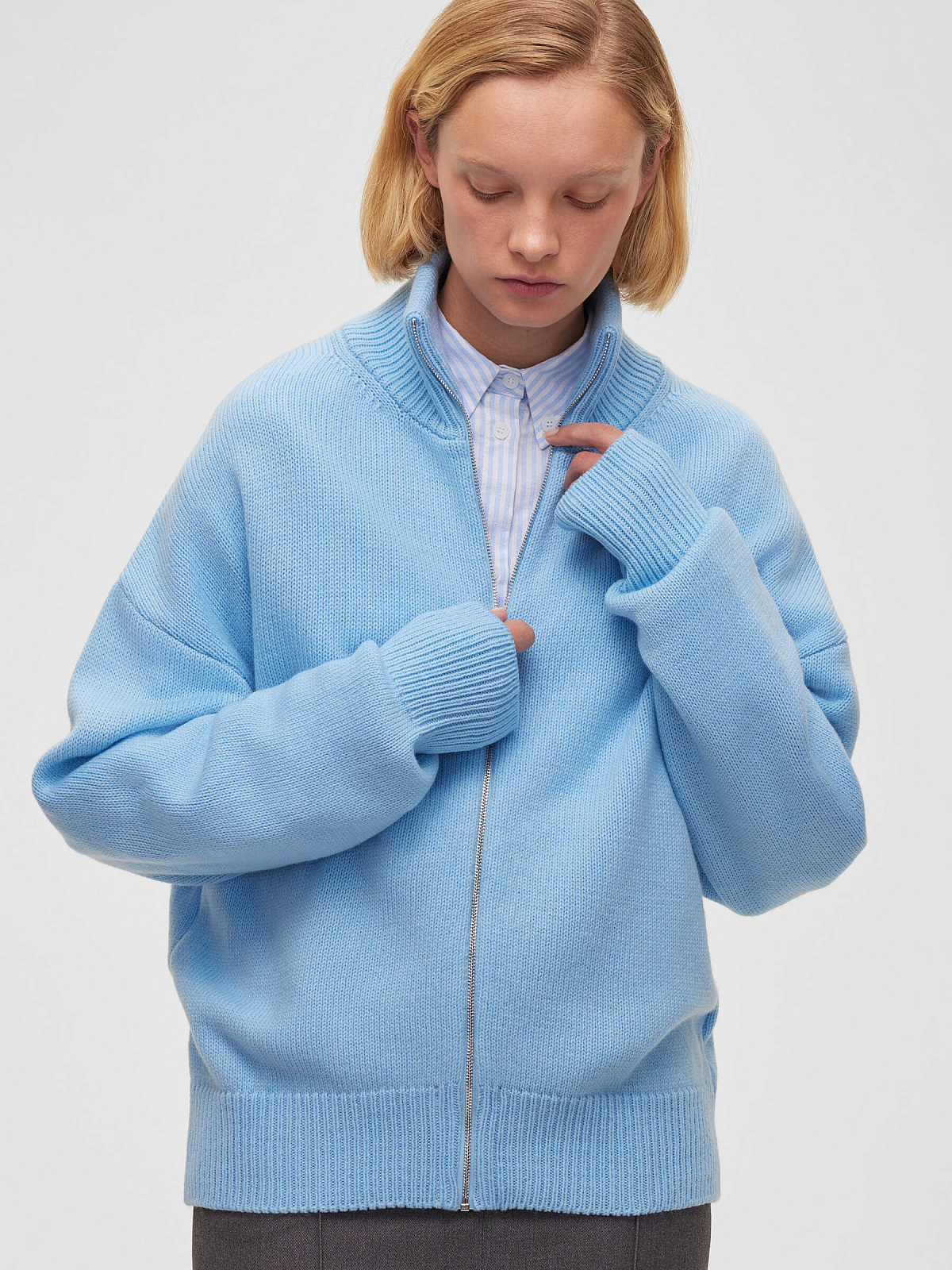 Эта модель свитера объединяет в себе нежность классического стиля и дерзость разъемного замка, что делает его уникальным элементом вашего гардероба. Благодаря необычному фасону свитер легко вписывается в разнообразные образы - от спортивного шика до романтичного женственного стиля.