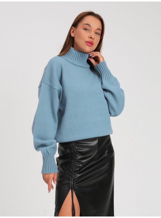 Акцентный длинный спущенный рукав в стиле "бишоп", высокий ворот.