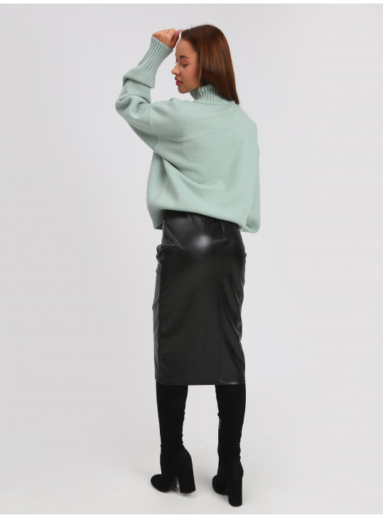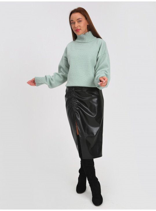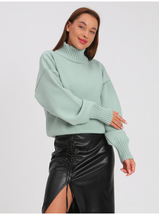 Акцентный длинный спущенный рукав в стиле "бишоп", высокий ворот.