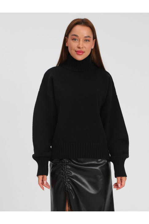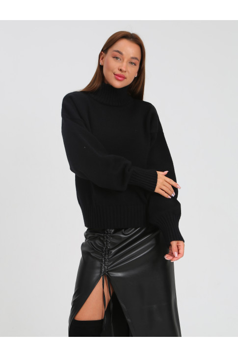 Акцентный длинный спущенный рукав в стиле "бишоп", высокий ворот.