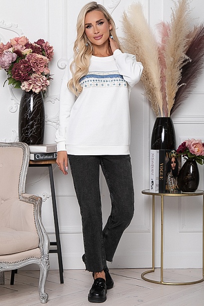 * Свитшот из хлопкового трикотажного полотна(футер трехнитка) свободного силуэта(ткань производство Турция)  с отделкой трикотажной рибаной и декоративным элементом в виде пайеток и бахромы.